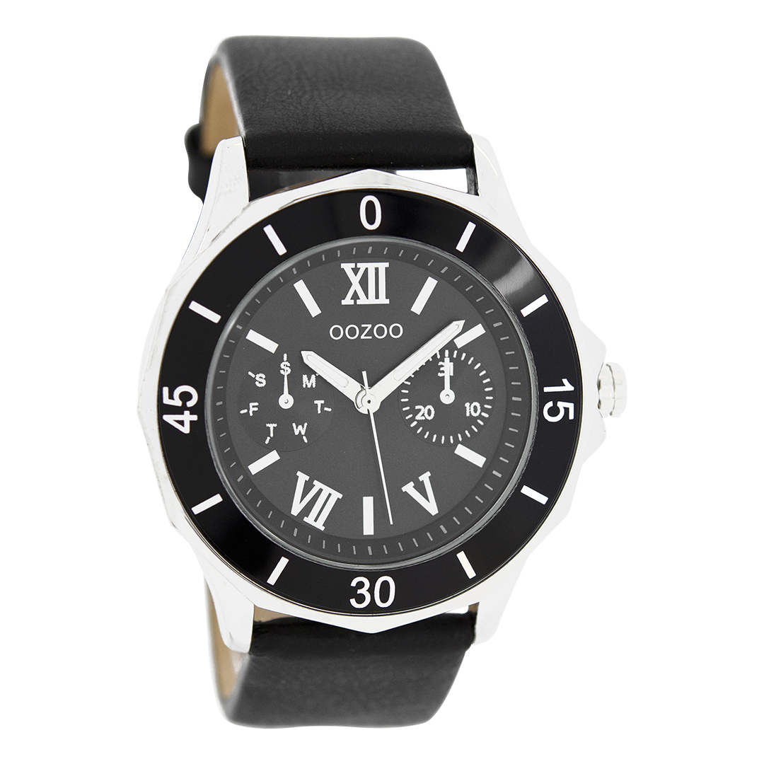Stand out with this beautiful round ladies design from the trendy OOZOO Timepieces collection. The C6259 has a black leather strap and 43 mm silver coloured metal watch case. You are making quite the fashion statement with this black chrono/sunray dial, silver coloured Roman numerals digits and matching hands. This essential watch for your wardrobe has a mineral glass, stainless steel backplate and is nickel safe. This watch has a 2 Japanese movement and is covered by a 2 year warranty (see section 3 of our Refund, shipping & warranty policy).