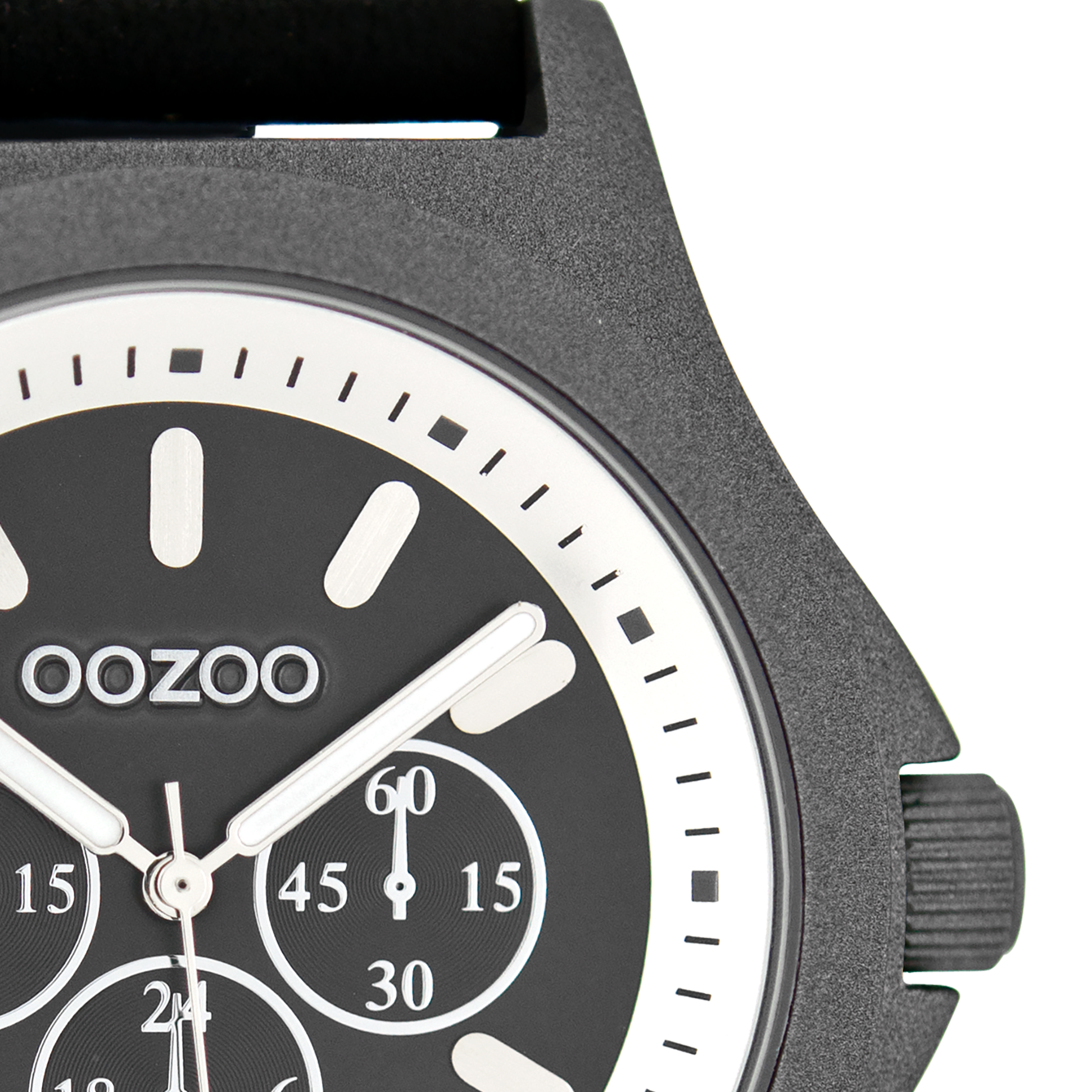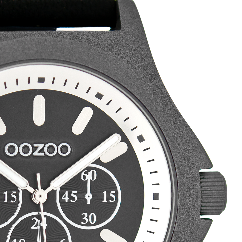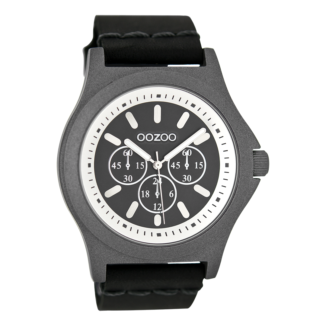 Stand out with this beautiful round ladies design from the trendy OOZOO Timepieces collection. The C6514 has a stitched black leather strap and 43 mm dark grey matte watch case. You are making quite the fashion statement with this black chrono dial, silver coloured stripes digits and silver coloured/white hands. This essential watch for your wardrobe has a mineral glass, stainless steel backplate and is nickel safe. This watch has a 2 Japanese movement and is covered by a 2 year warranty (see section 3 of our Refund, shipping & warranty policy).