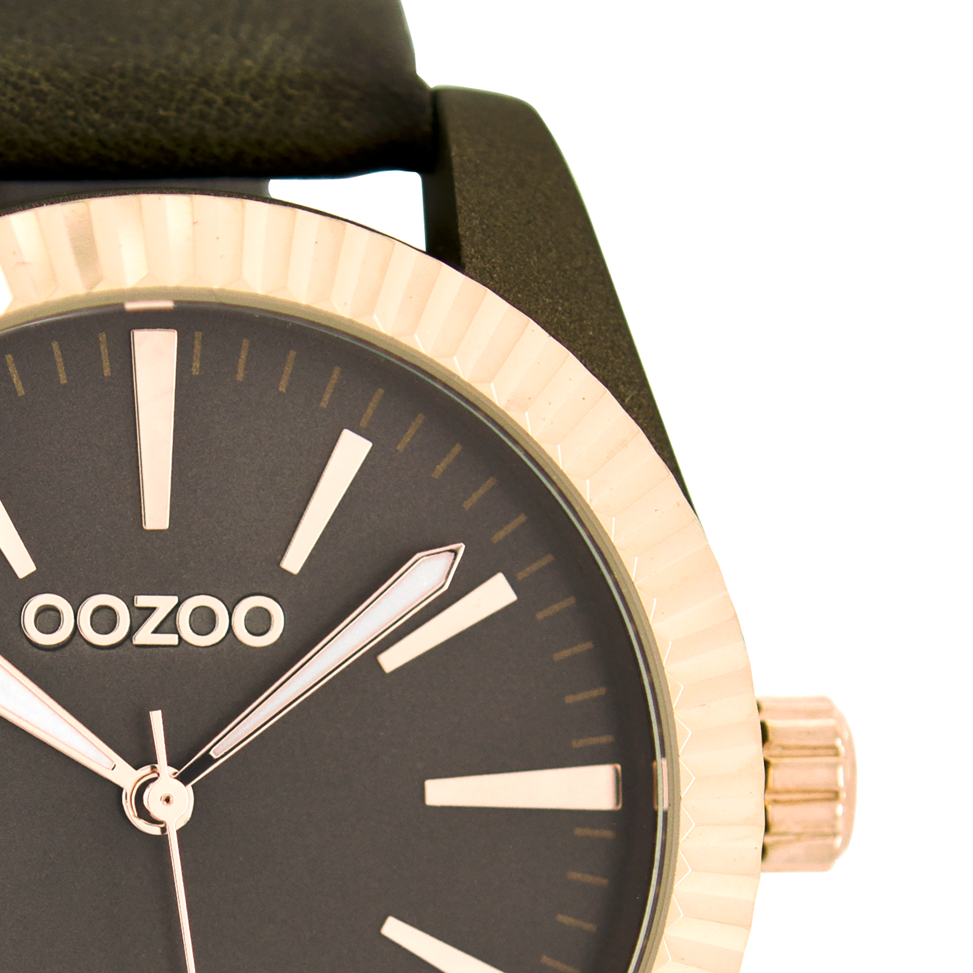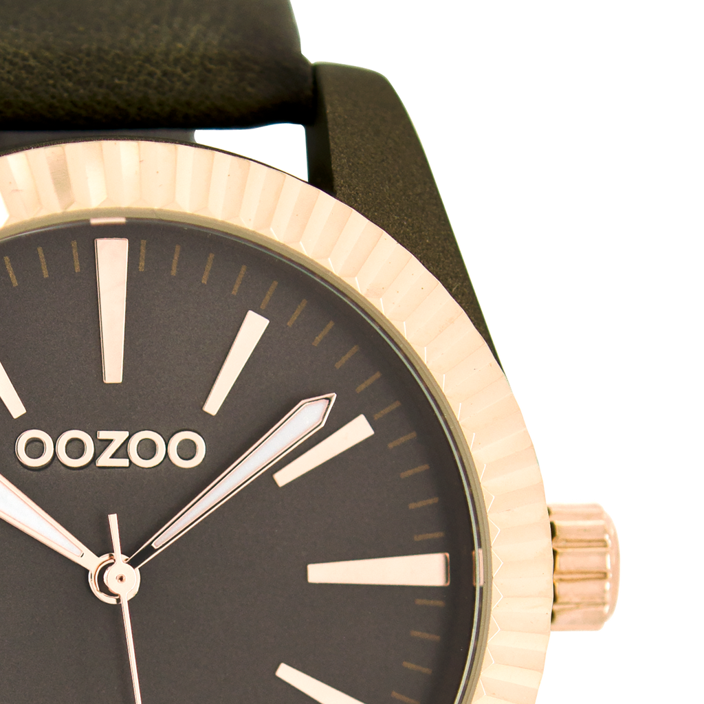 Rose gold coloured OOZOO watch with dark brown leather strap - C6518