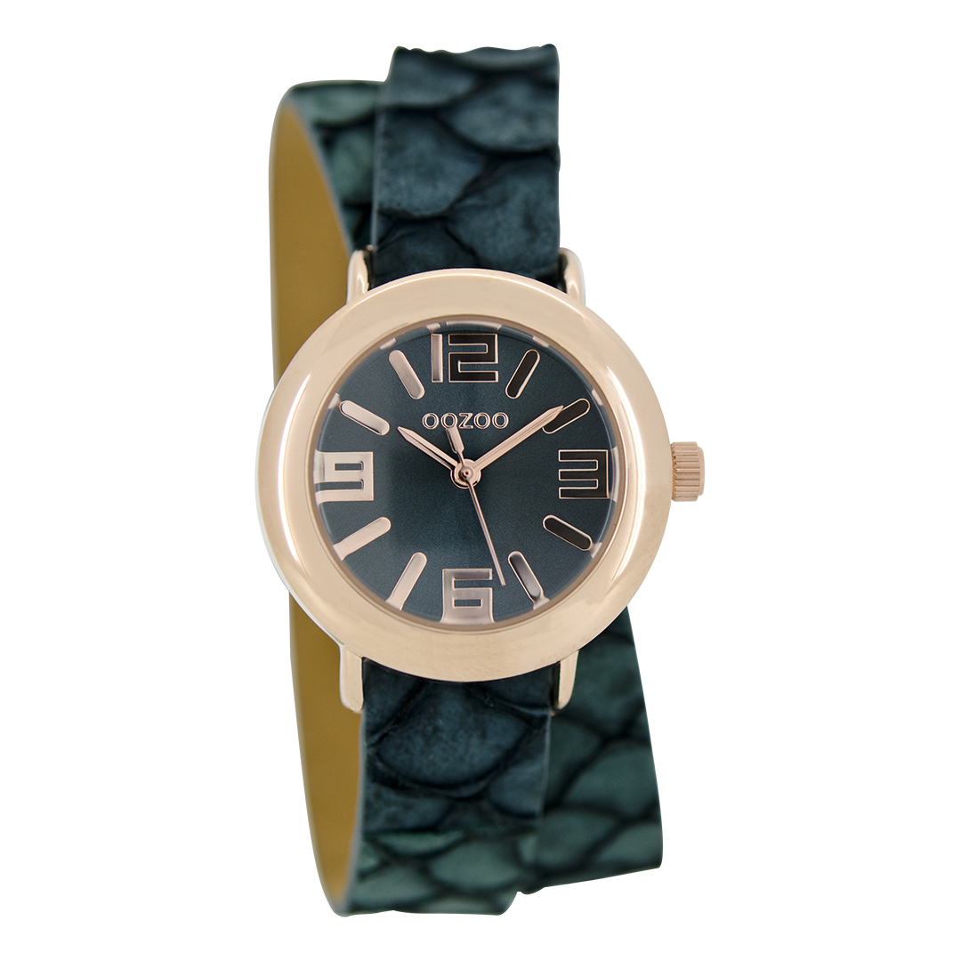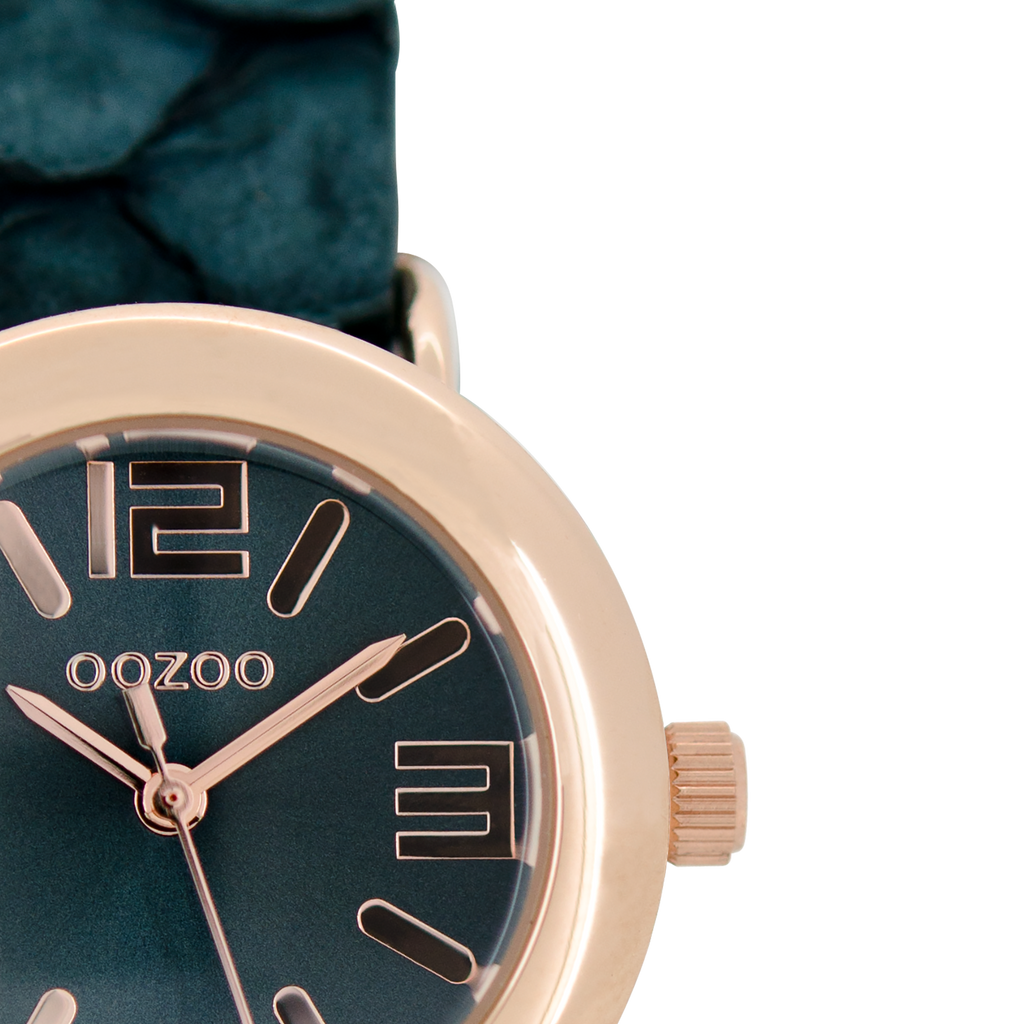 Rose gold coloured OOZOO watch with aqua green leather strap - C6543