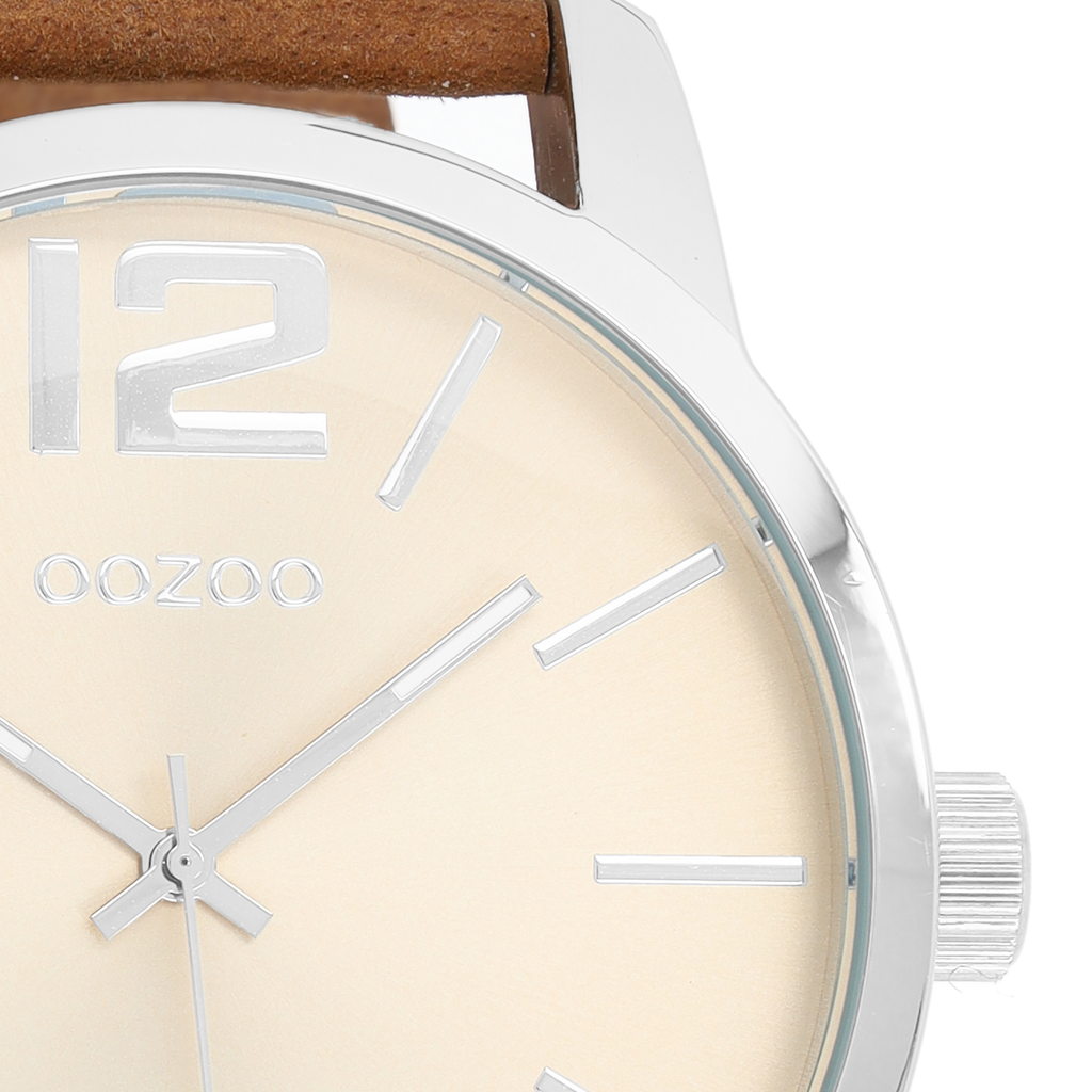 Silver coloured OOZOO watch with brown leather strap - C6701