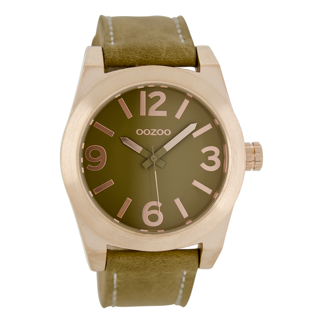 Stand out with this beautiful round unisex design from the trendy OOZOO Timepieces collection. The C6735 has a stitched camel leather strap and 43 mm rose gold coloured metal watch case. You are making quite the fashion statement with this camel chrono dial, rose gold coloured stripes and numbers digits and matching hands. This essential watch for your wardrobe has a mineral glass, stainless steel backplate and is nickel safe. This watch has a 2 Japanese movement and is covered by a 2 year warranty (see section 3 of our Refund, shipping & warranty policy).