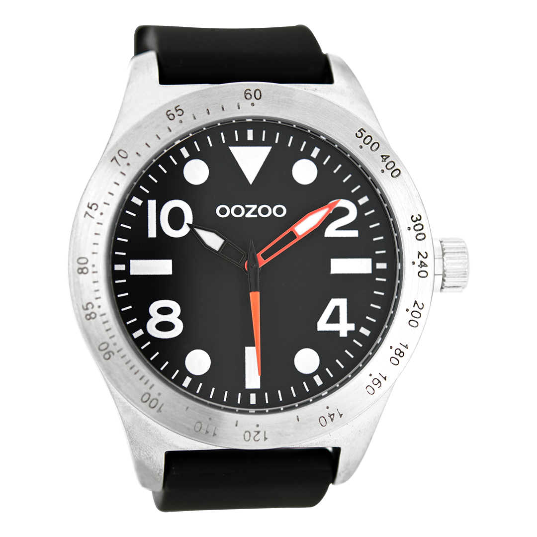 Silver coloured OOZOO watch with black rubber strap - C6753