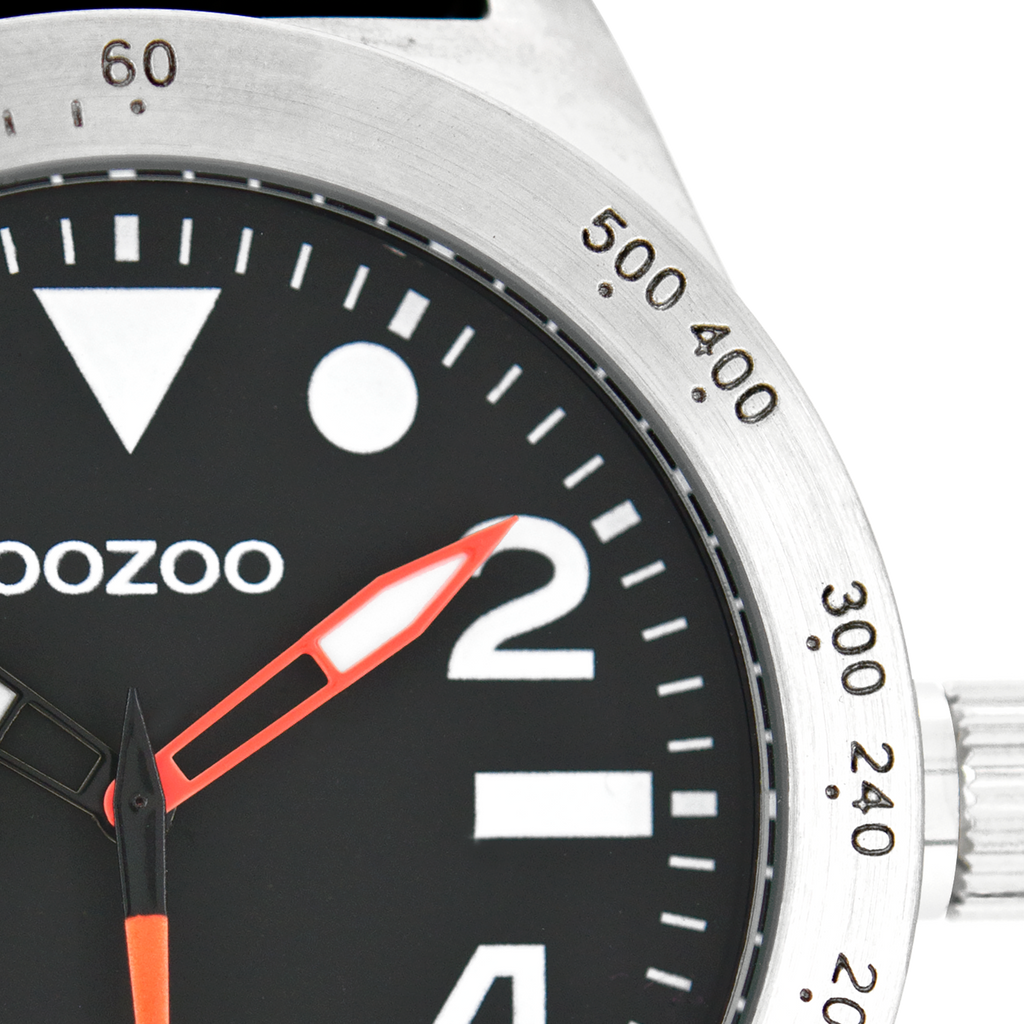 Stand out with this beautiful round gents design from the trendy OOZOO Timepieces collection. The C6753 has a black rubber strap and 50 mm silver coloured metal watch case. You are making quite the fashion statement with this black dial, white dots and numbers digits and fluo orange hands. This essential watch for your wardrobe has a mineral glass, stainless steel backplate and is nickel safe. This watch has a 2 Japanese movement and is covered by a 2 year warranty (see section 3 of our Refund, shipping & warranty policy).