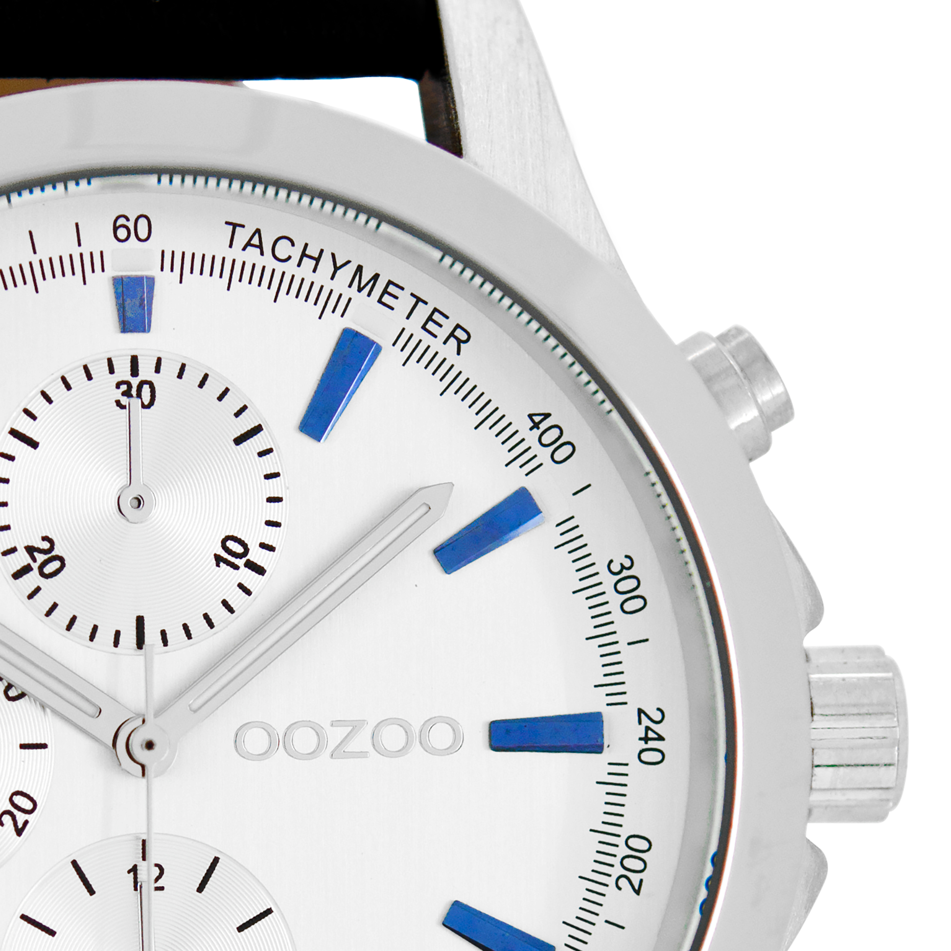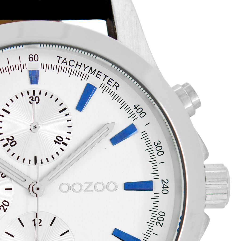 Stand out with this beautiful round gents design from the trendy OOZOO Timepieces collection. The C6773 has a stitched black leather strap and 47 mm silver coloured metal watch case. You are making quite the fashion statement with this white chrono dial, blue stripes digits and silver coloured hands. This essential watch for your wardrobe has a mineral glass, stainless steel backplate and is nickel safe. This watch has a 2 Japanese movement and is covered by a 2 year warranty (see section 3 of our Refund, shipping & warranty policy).