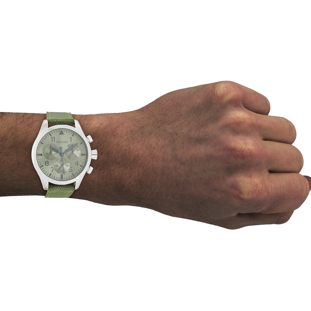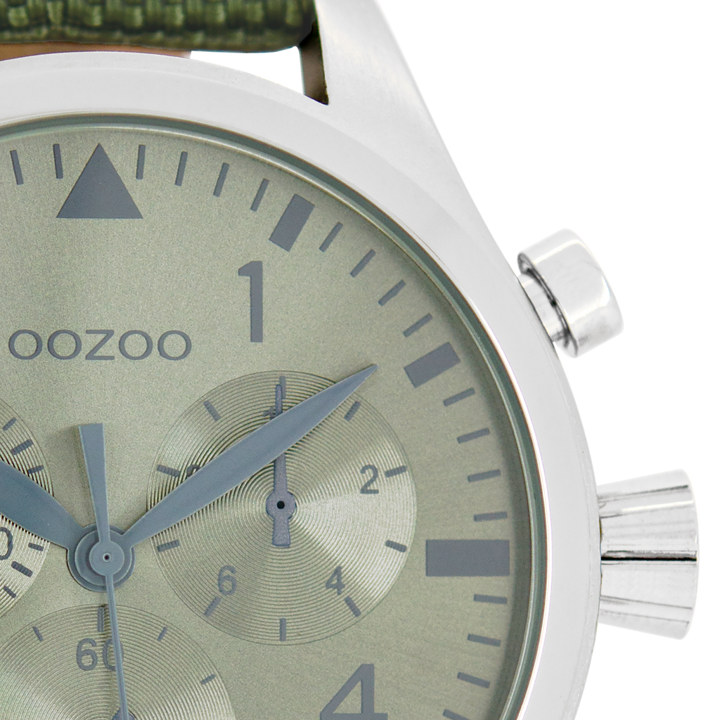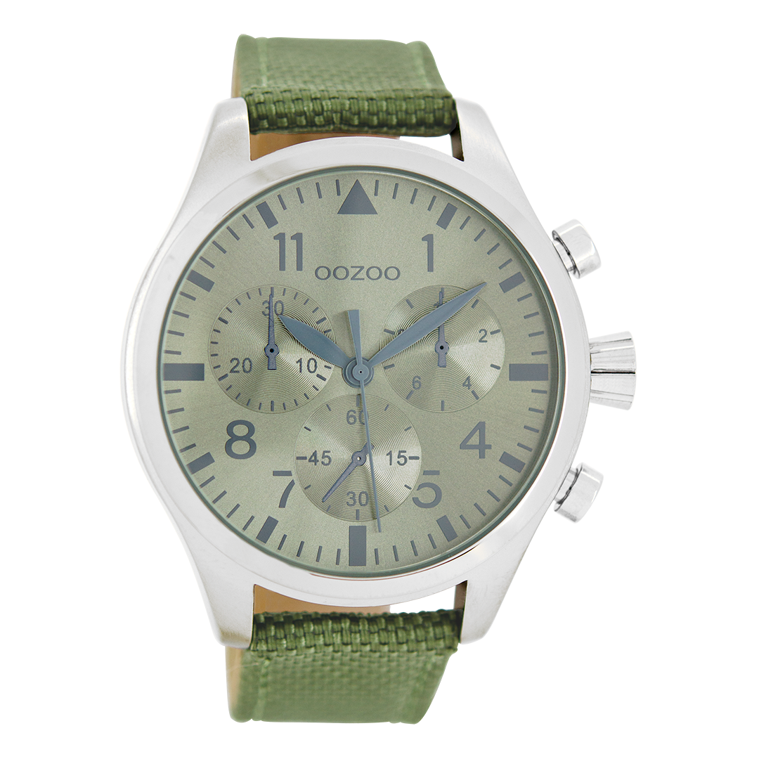 Silver coloured OOZOO watch with green NATO watch strap - C6798