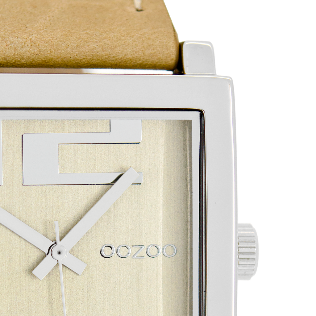 Silver coloured OOZOO watch with sand leather strap - C6815