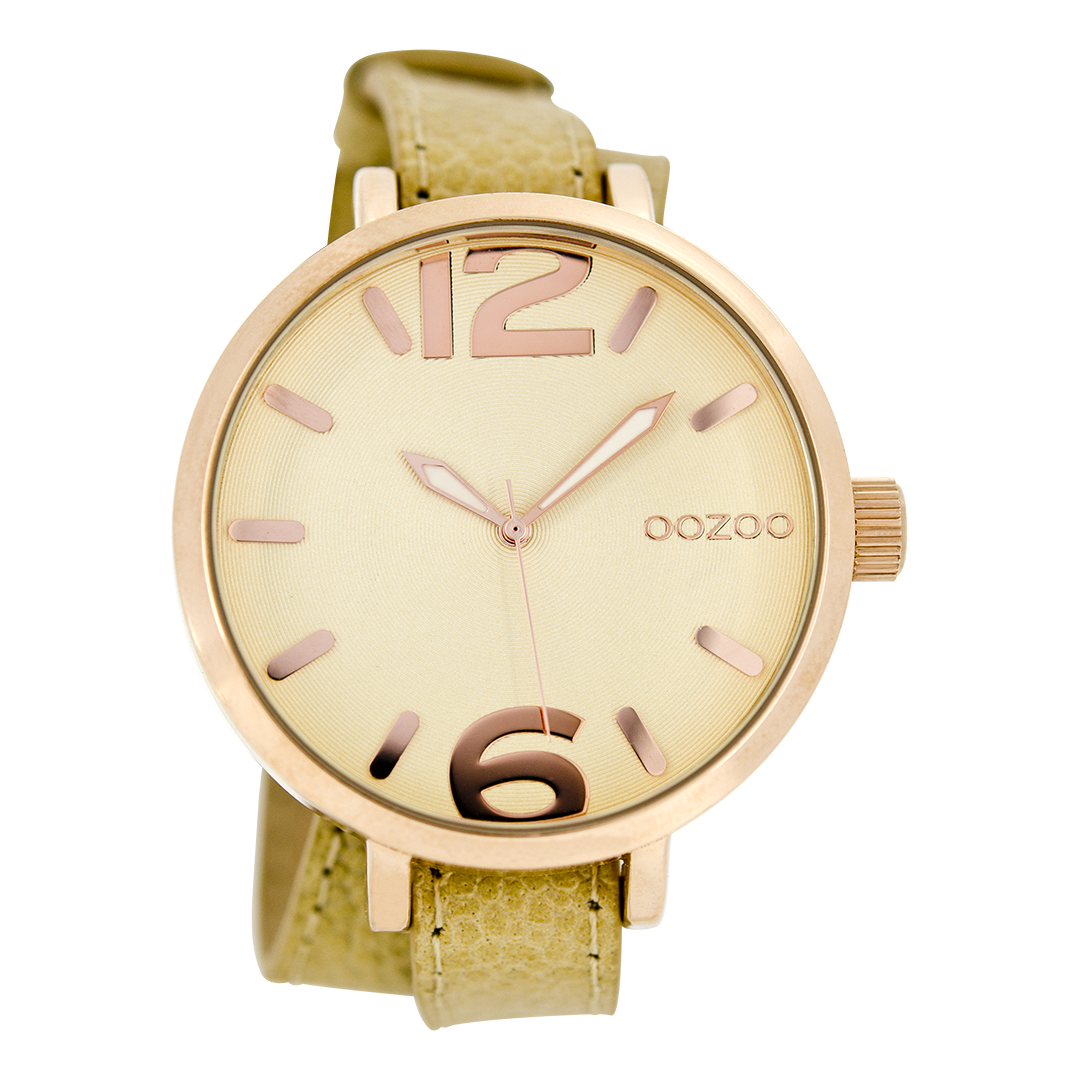 Rose gold coloured OOZOO watch with sand leather strap - C6835