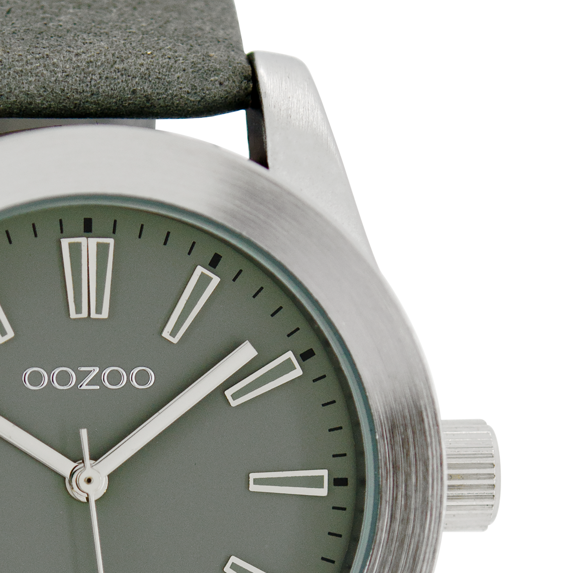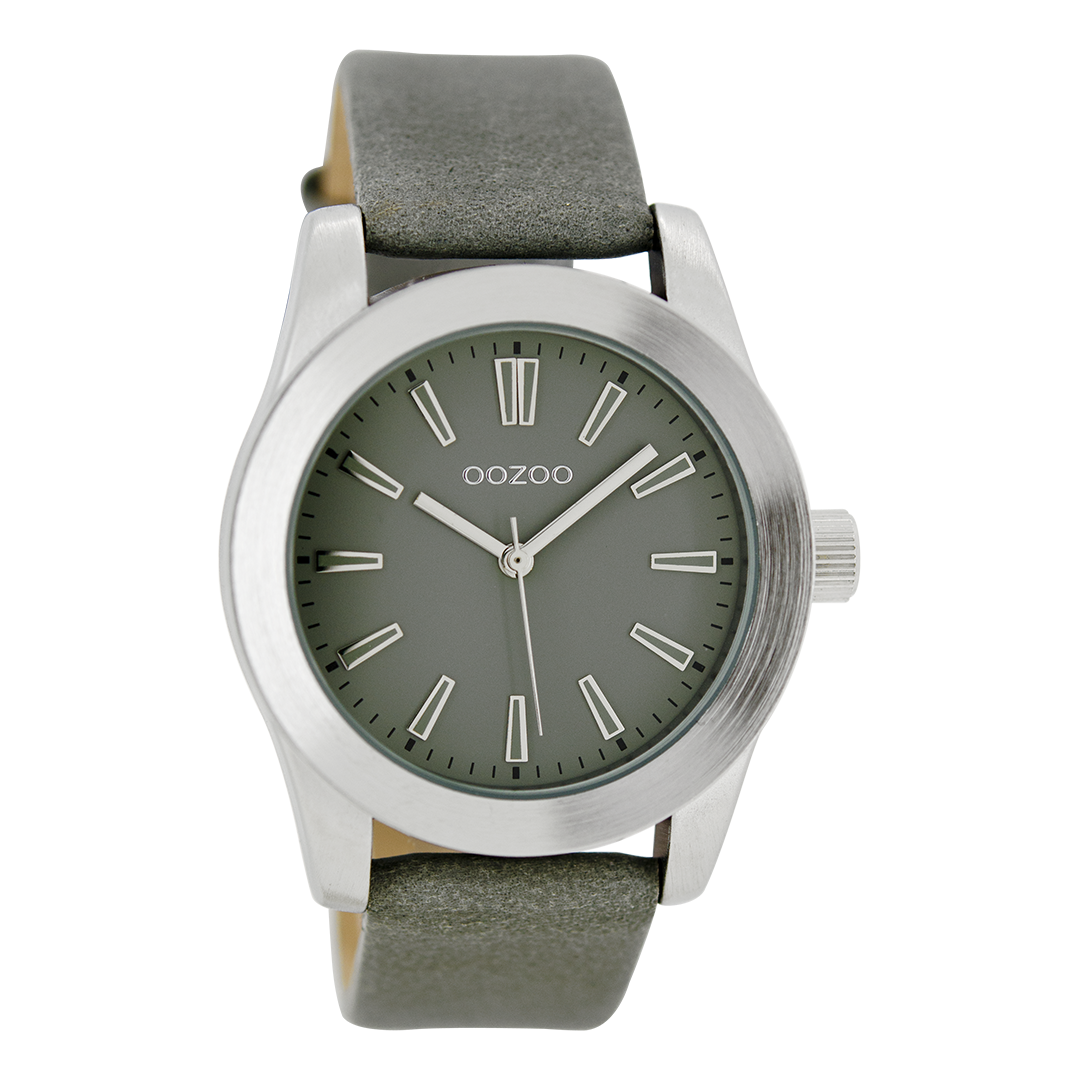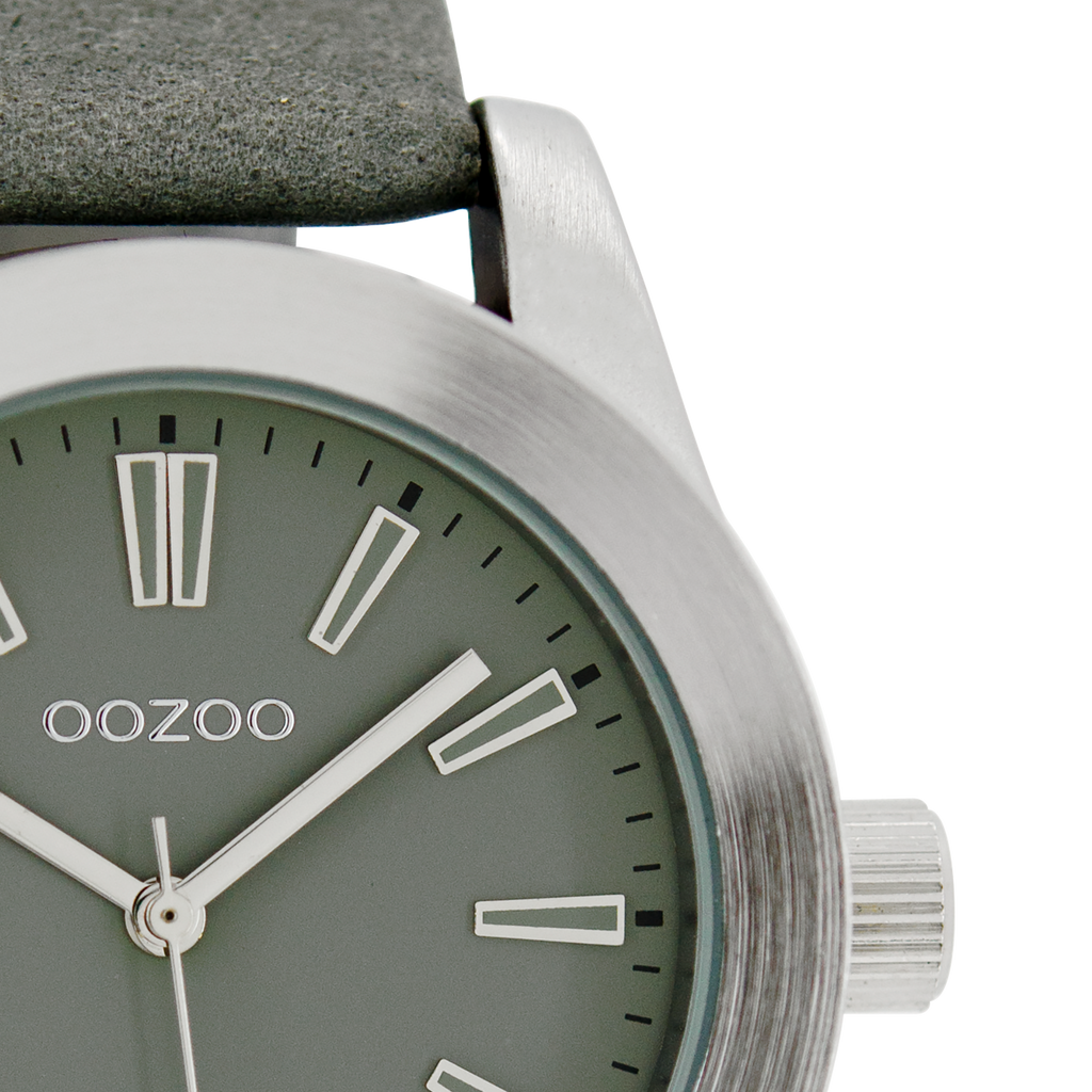 Silver coloured OOZOO watch with grey leather strap - C6860
