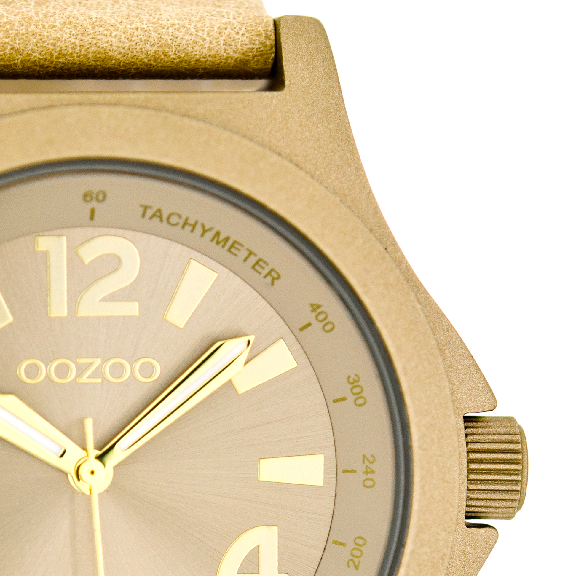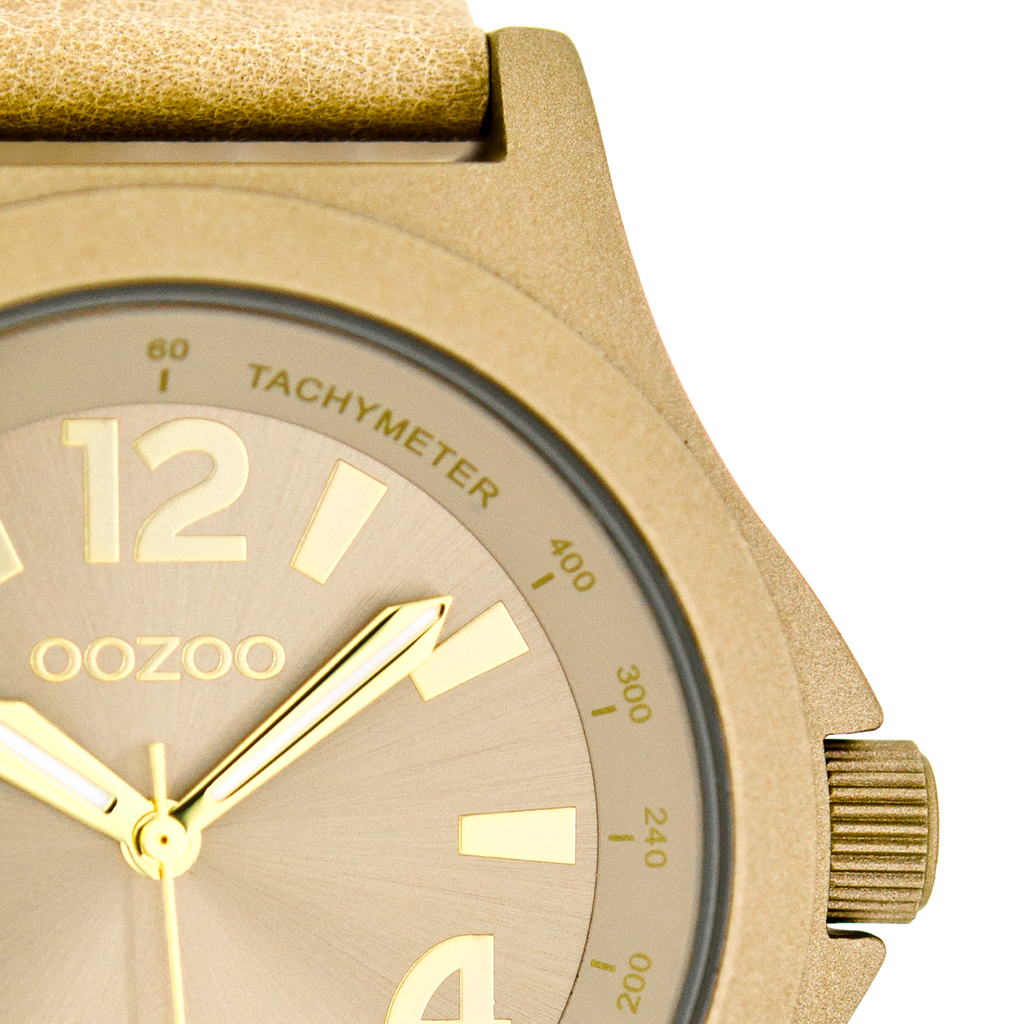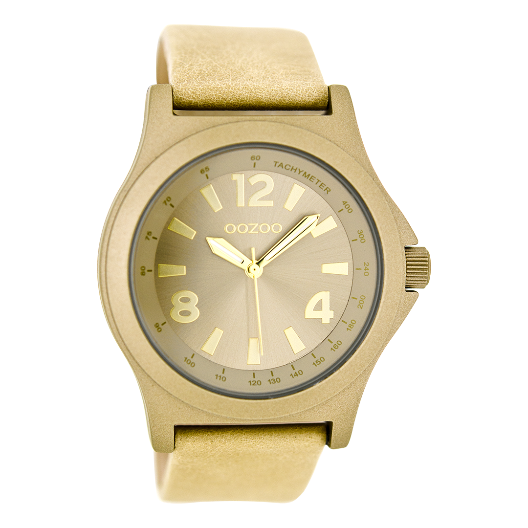 Gold coloured OOZOO watch with sand leather strap - C6875