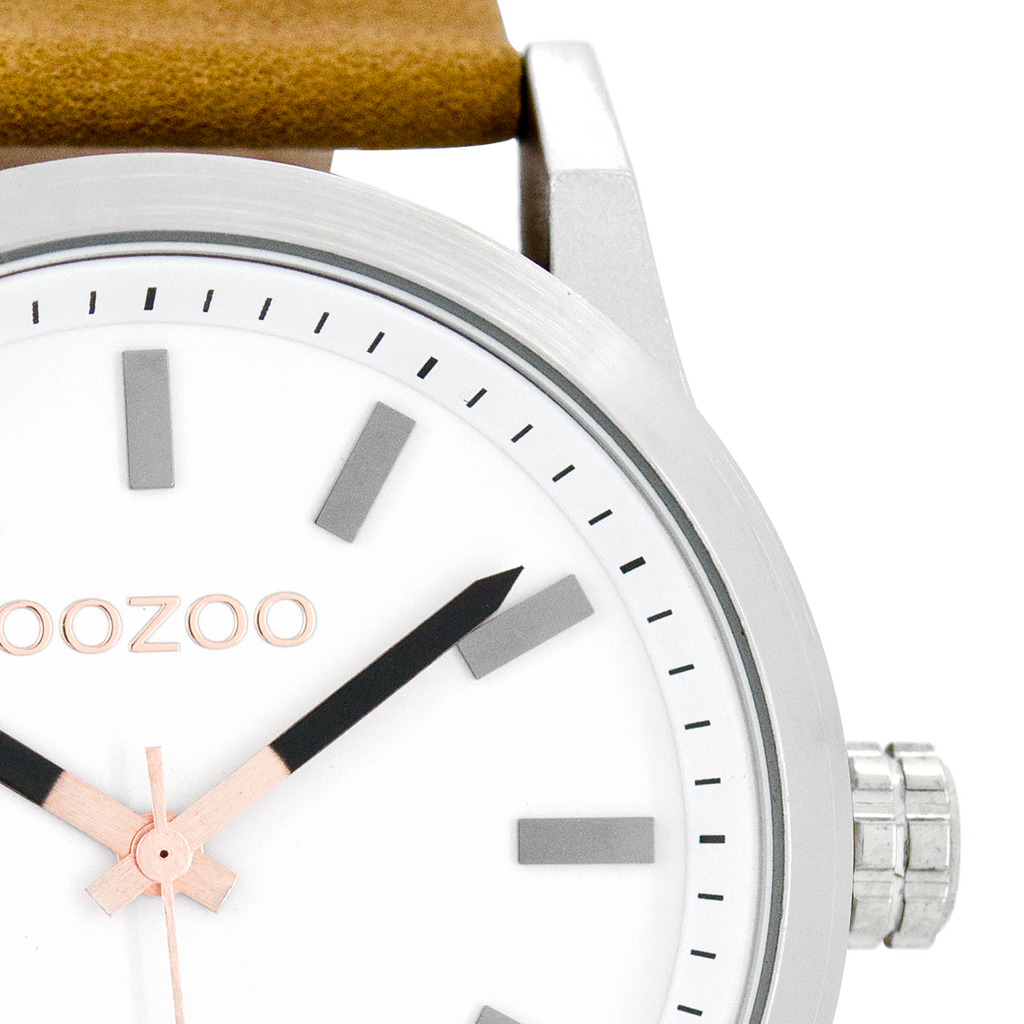Silver coloured OOZOO watch with camel leather strap - C7035