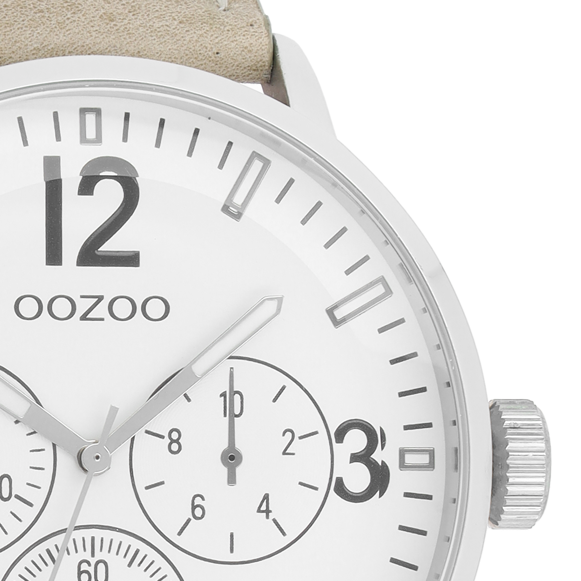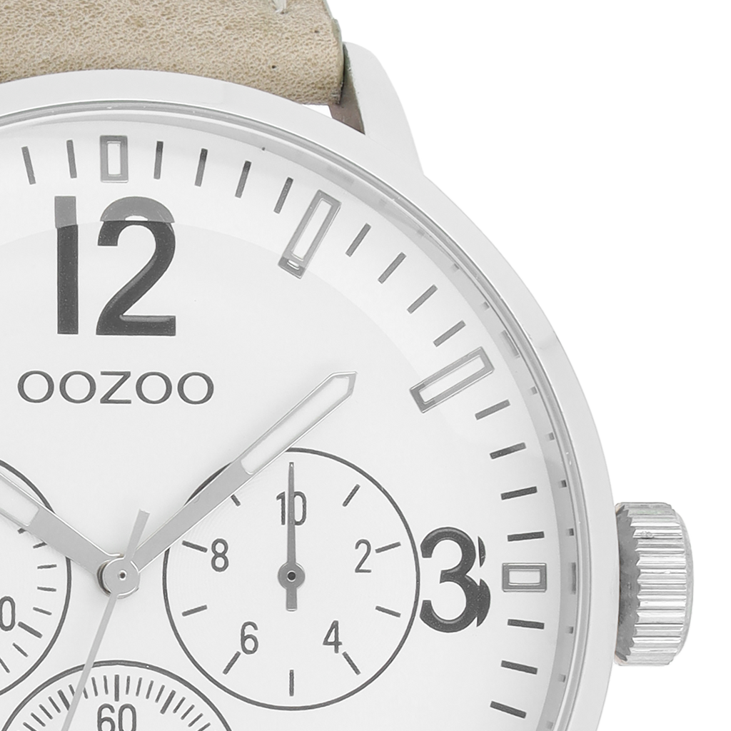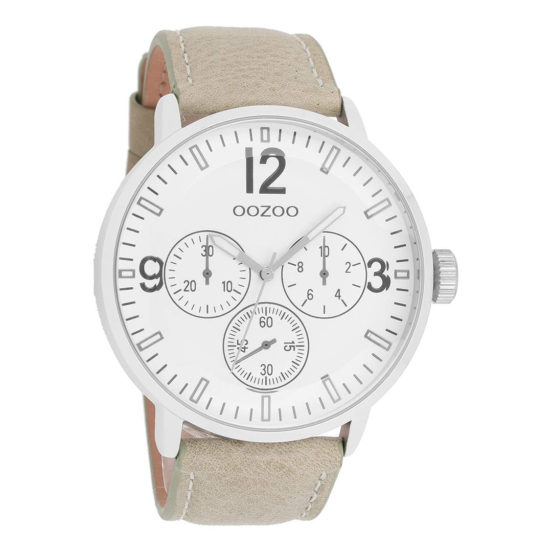 Silver coloured OOZOO watch with beige leather strap - C7046