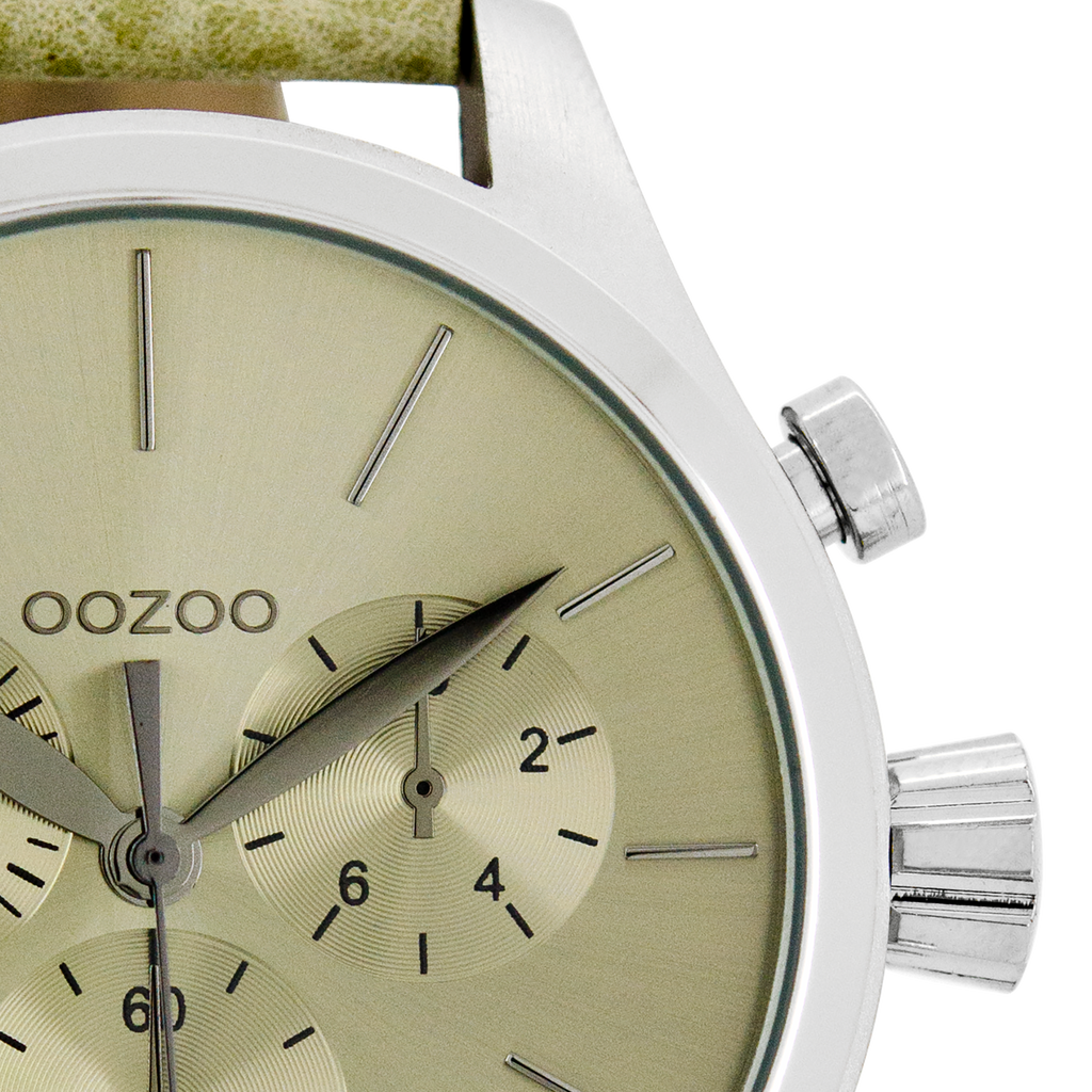 Silver coloured OOZOO watch with beige NATO watch strap - C7060