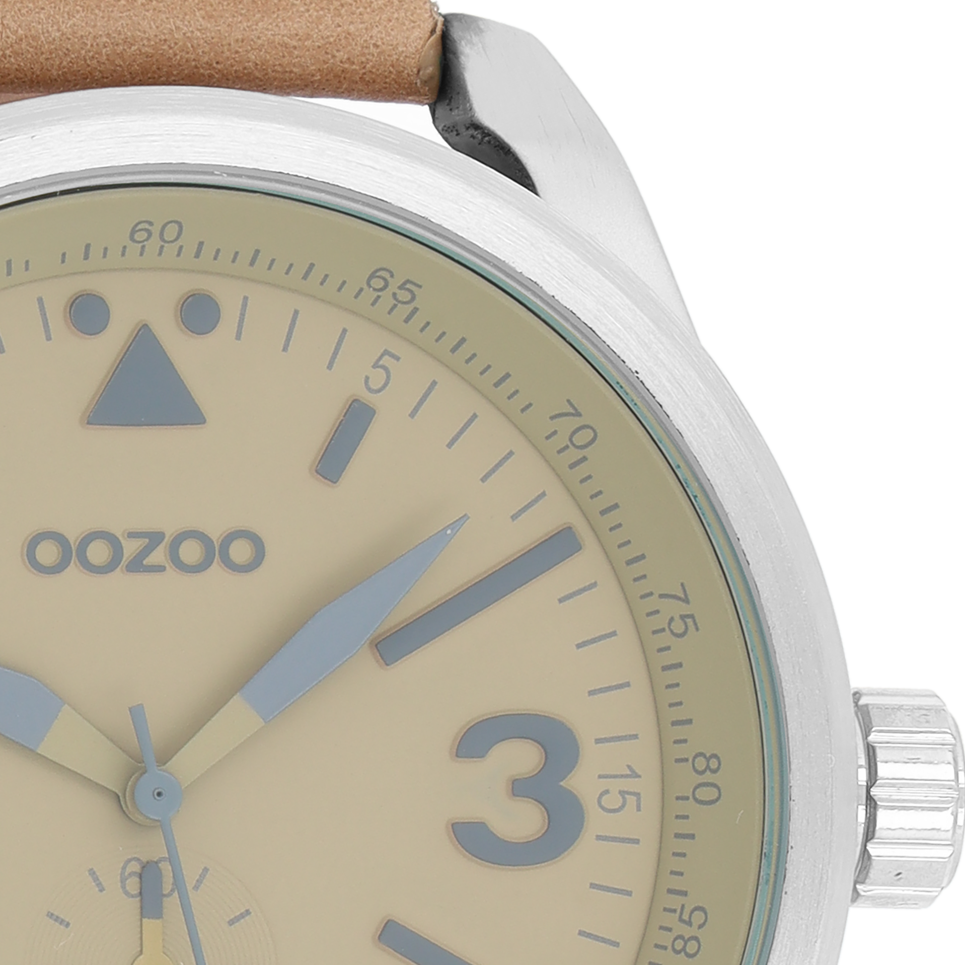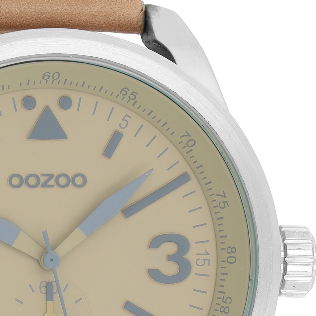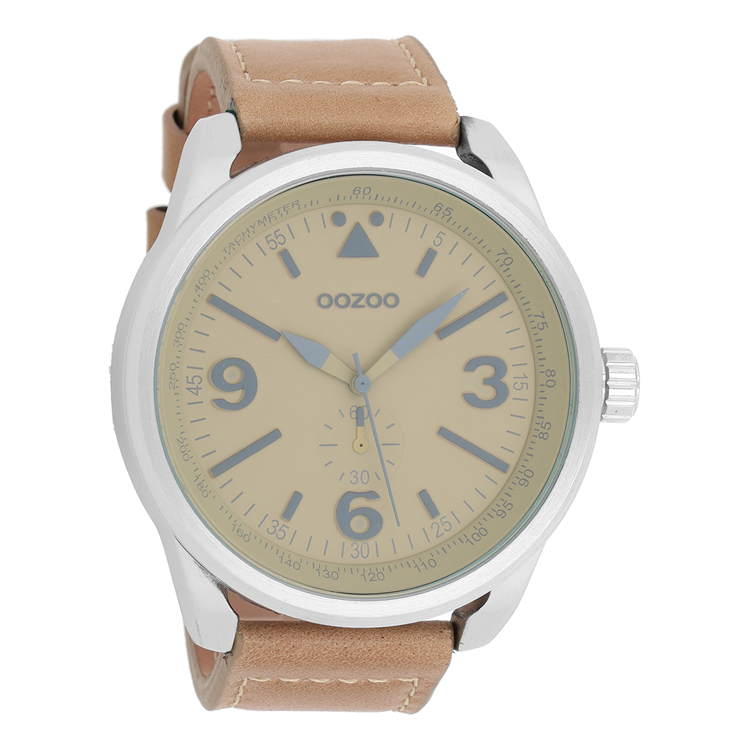 Silver coloured OOZOO watch with camel leather strap - C7065