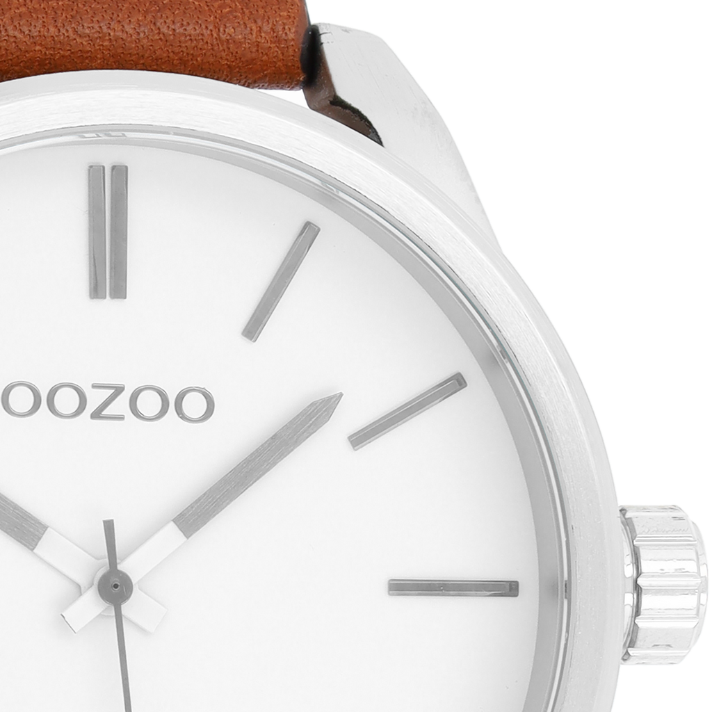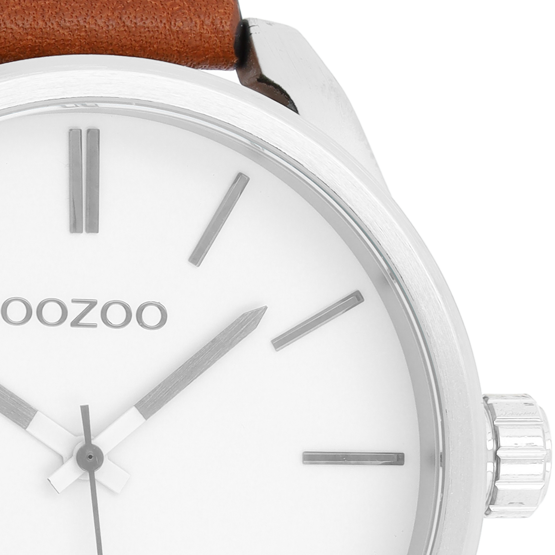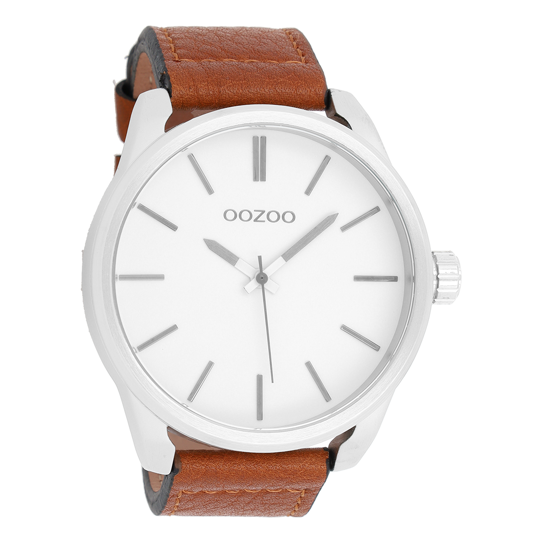 Silver coloured OOZOO watch with cognac leather strap - C7070