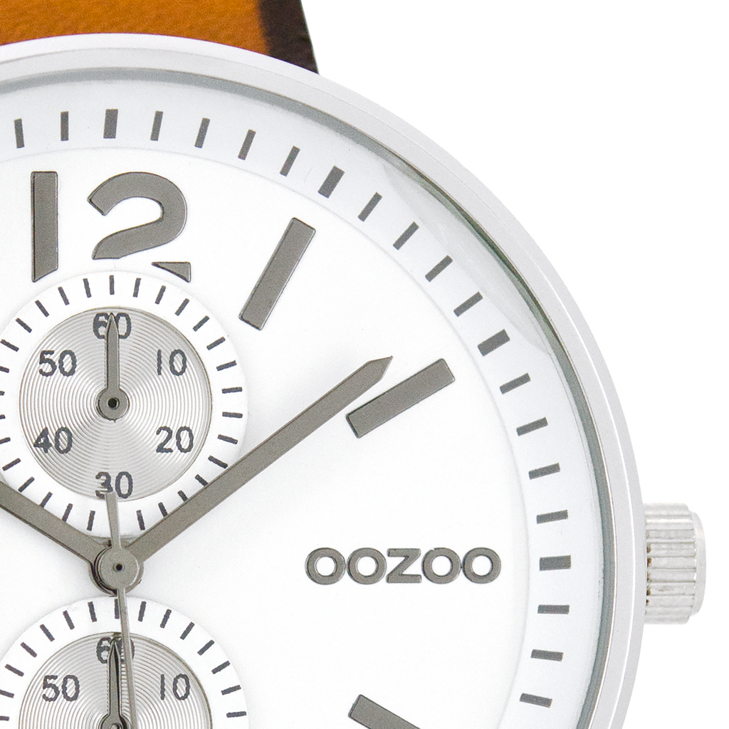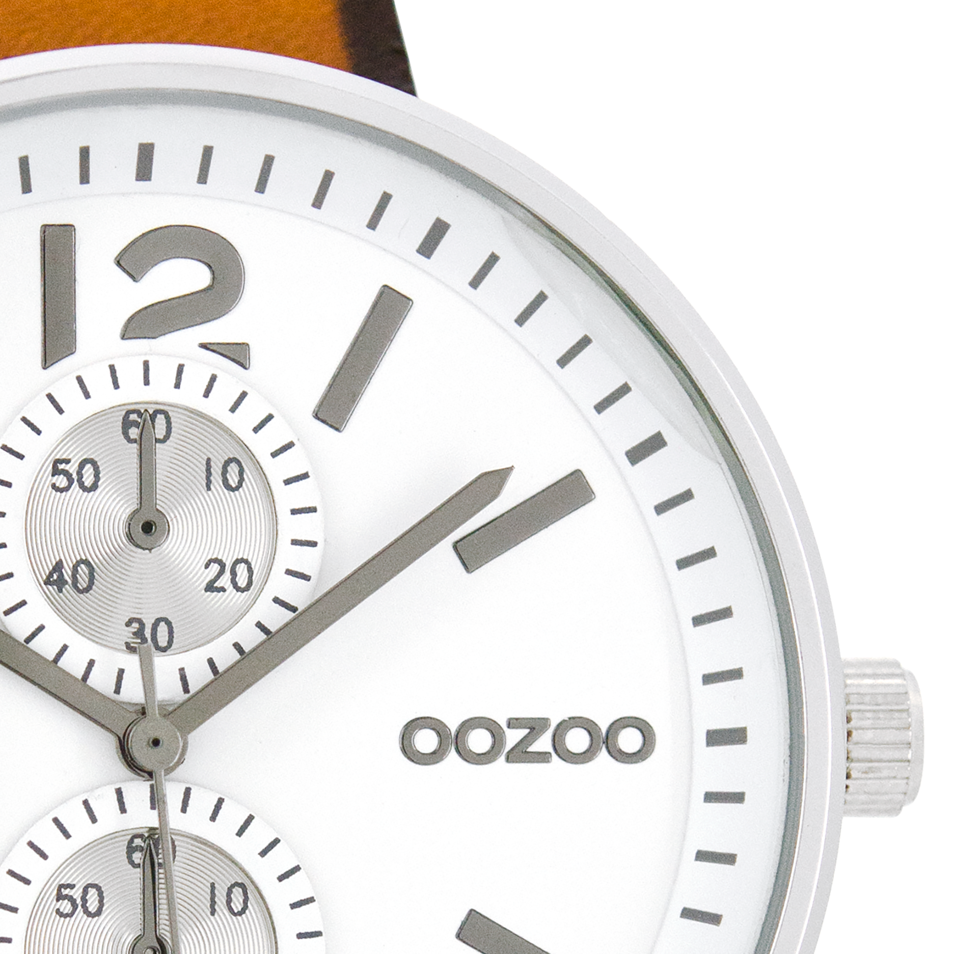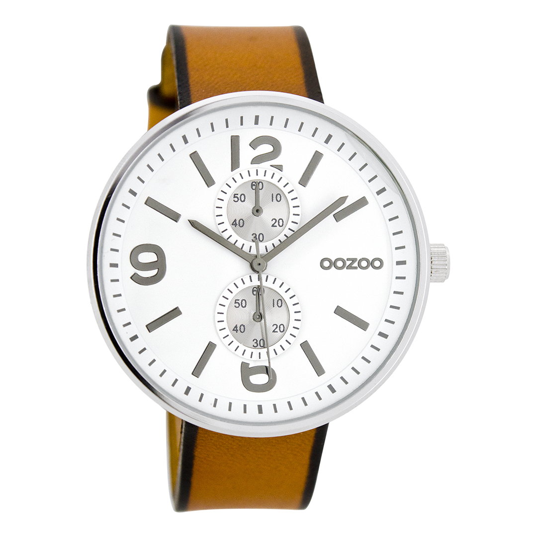 Silver coloured OOZOO watch with cognac leather strap - C7075
