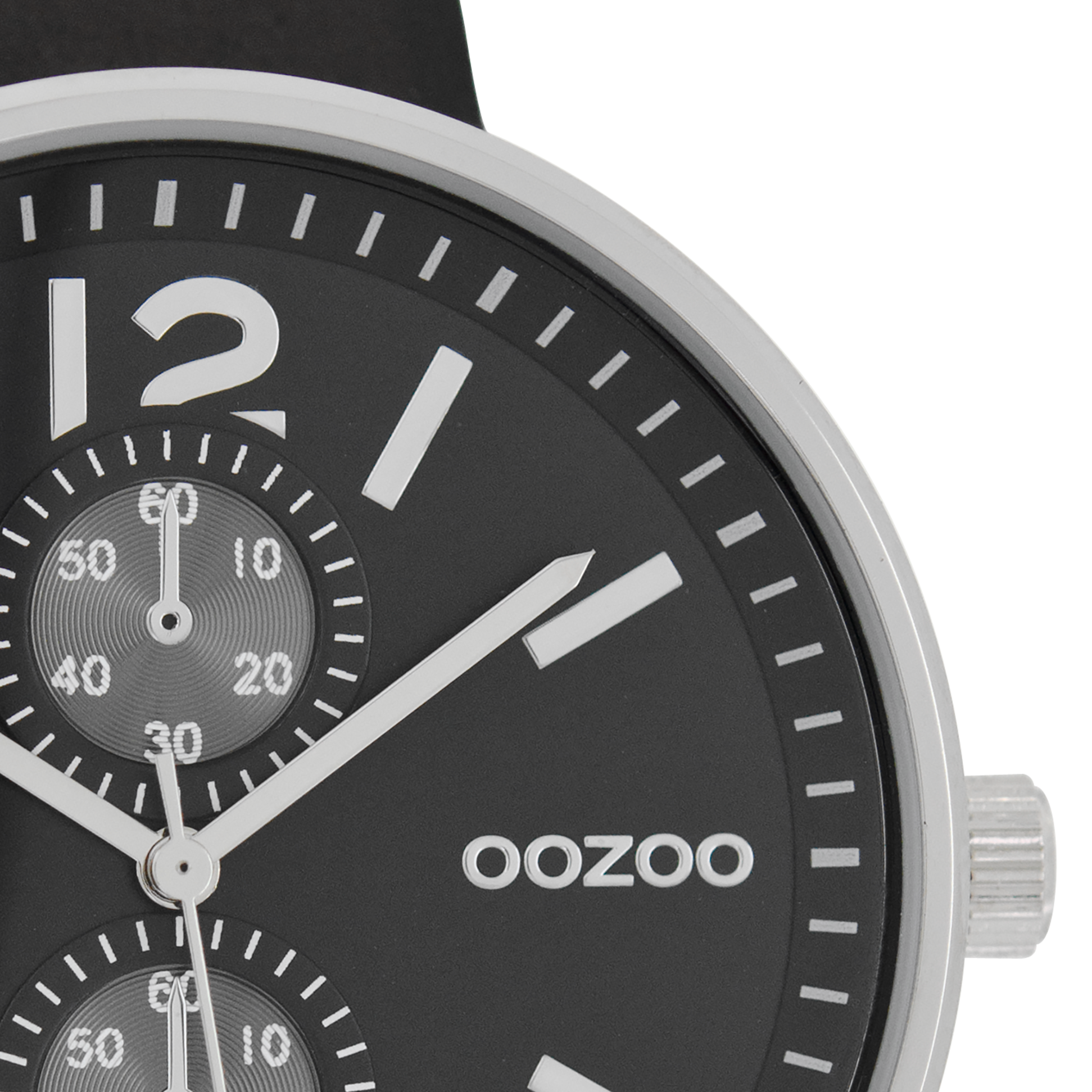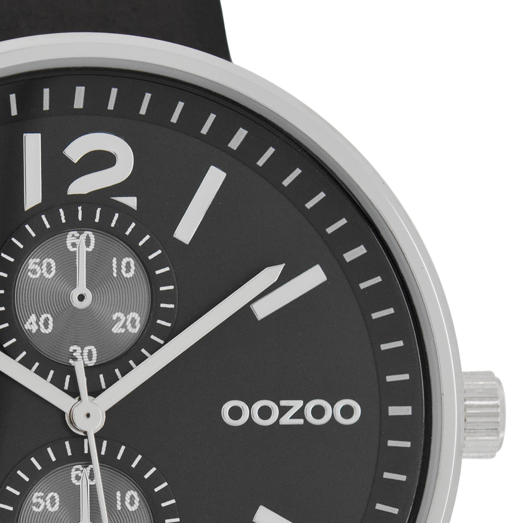 Stand out with this beautiful round gents design from the trendy OOZOO Timepieces collection. The C7079 has a black leather strap and 46 mm silver coloured metal watch case. You are making quite the fashion statement with this black chrono dial, silver coloured stripes and numbers digits and matching hands. This essential watch for your wardrobe has a mineral glass, stainless steel backplate and is nickel safe. This watch has a 2 Japanese movement and is covered by a 2 year warranty (see section 3 of our Refund, shipping & warranty policy).