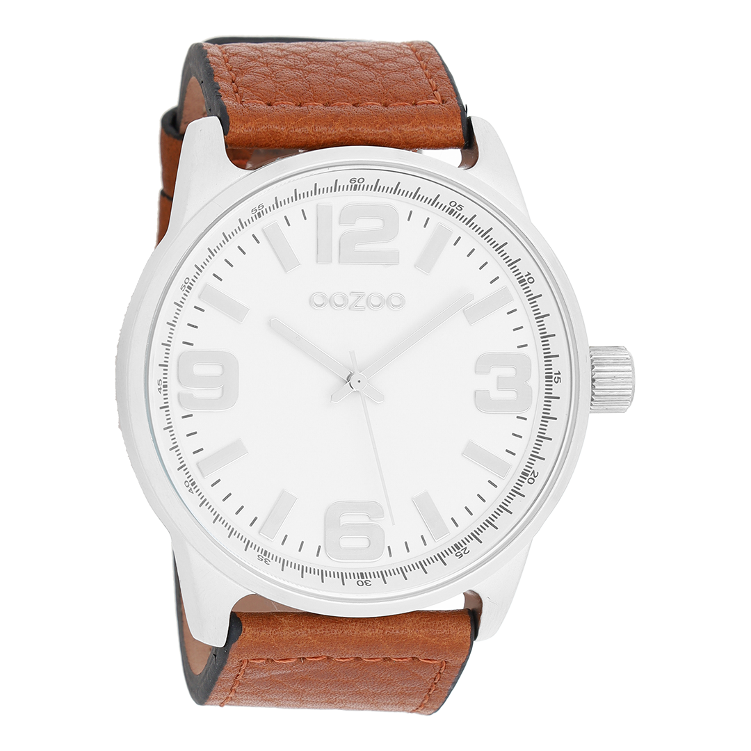 Stand out with this beautiful round gents design from the trendy OOZOO Timepieces collection. The C7091 has a stitched cognac leather strap and 48 mm silver coloured metal watch case. You are making quite the fashion statement with this white dial, silver coloured stripes and numbers digits and matching hands. This essential watch for your wardrobe has a mineral glass, stainless steel backplate and is nickel safe. This watch has a 2 Japanese movement and is covered by a 2 year warranty (see section 3 of our Refund, shipping & warranty policy).