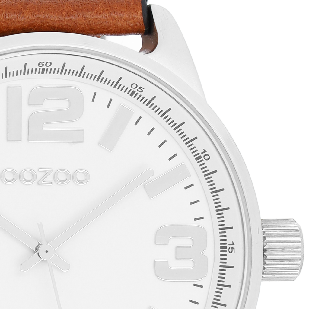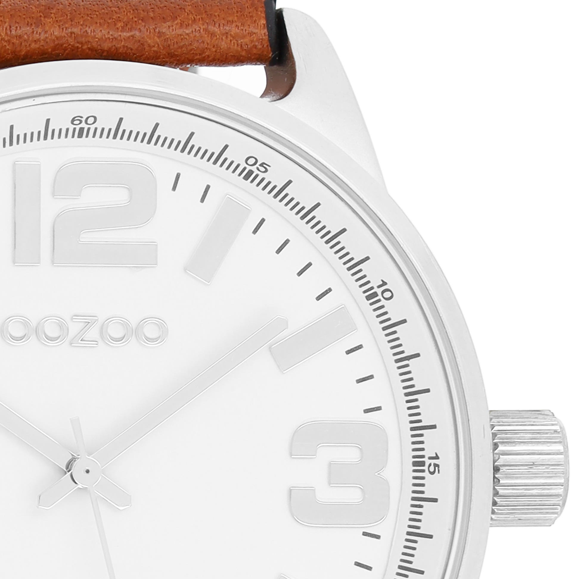 Silver coloured OOZOO watch with cognac leather strap - C7091