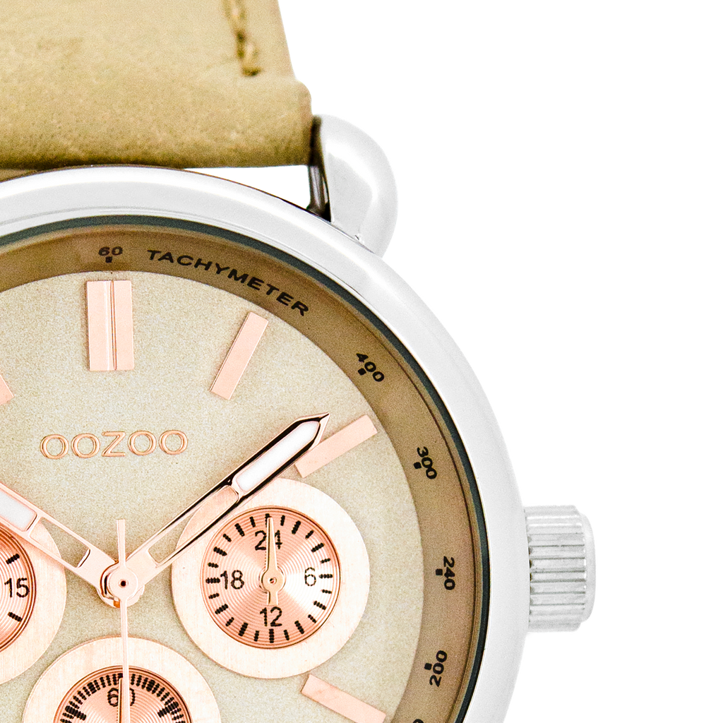 Silver coloured OOZOO watch with sand leather strap - C7135