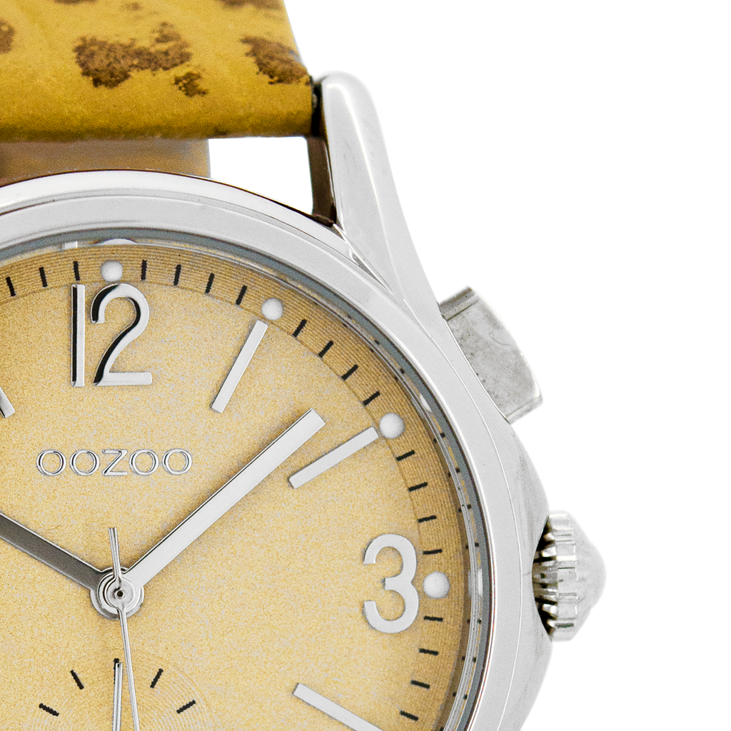 Silver coloured OOZOO watch with camel leather strap - C7225
