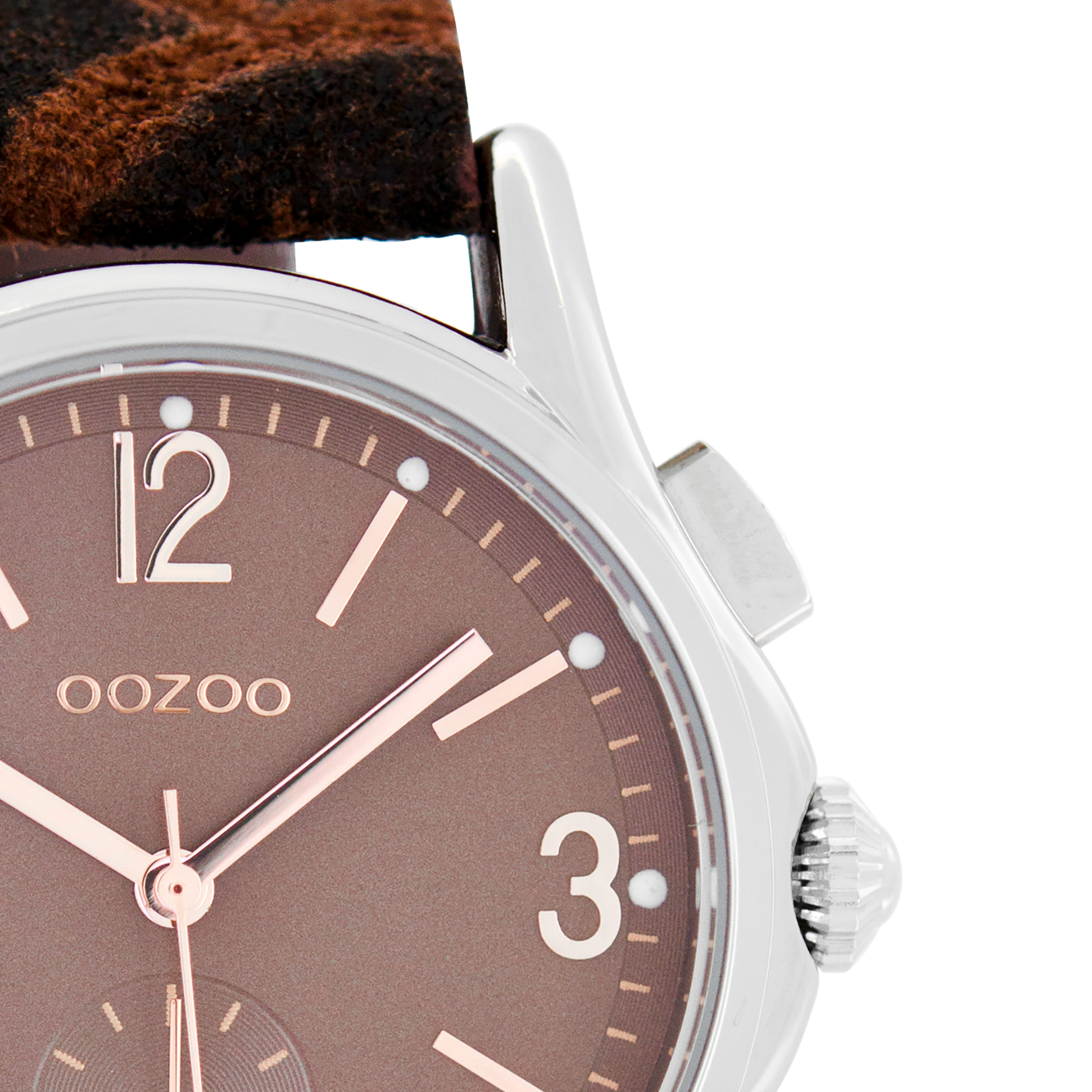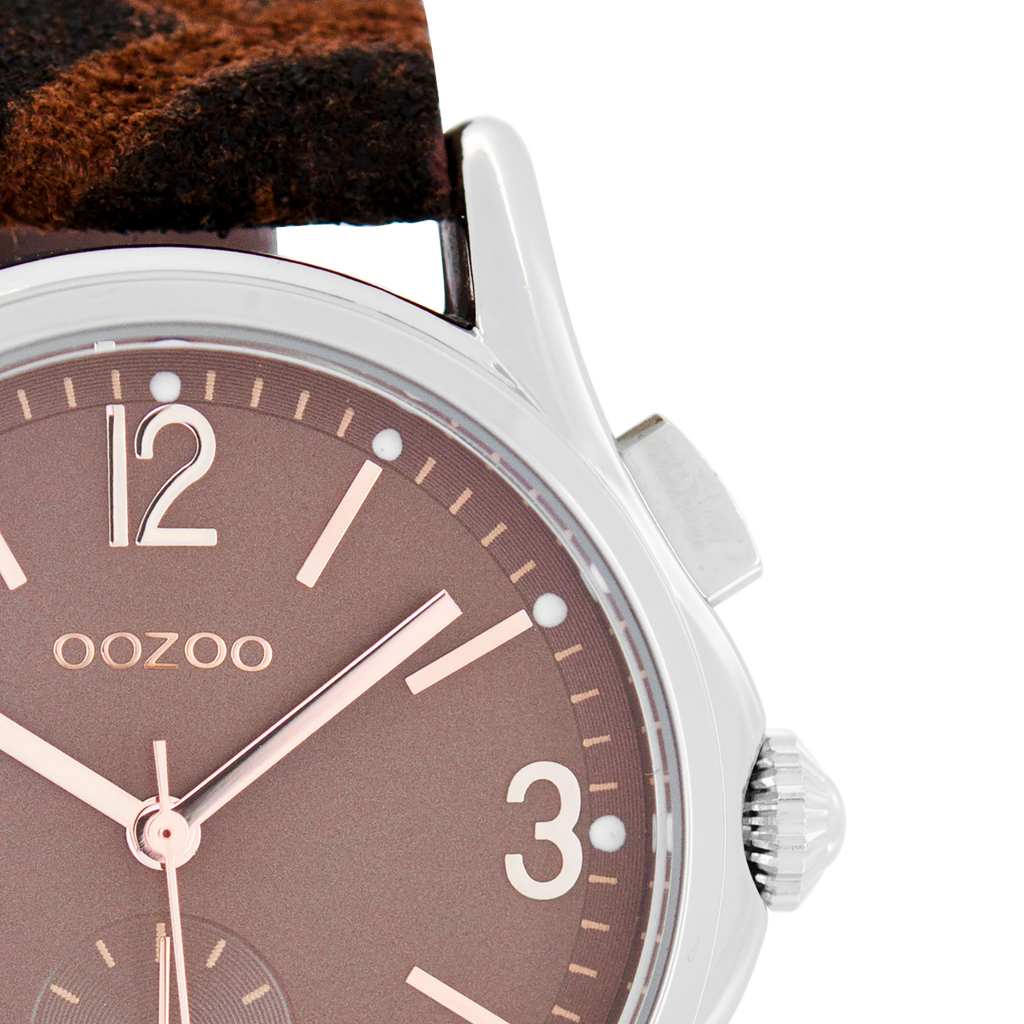 Silver coloured OOZOO watch with brown leather strap - C7229