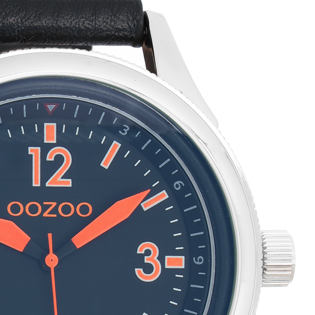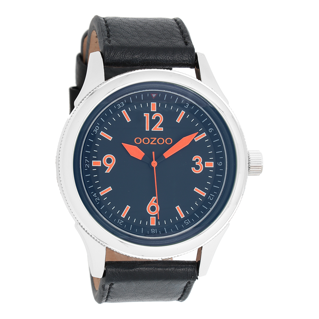 Stand out with this beautiful round gents design from the trendy OOZOO Timepieces collection. The C7479 has a stitched black leather strap and 48 mm silver coloured metal watch case. You are making quite the fashion statement with this black dial, fluo orange stripes and numbers digits and matching hands. This essential watch for your wardrobe has a mineral glass, stainless steel backplate and is nickel safe. This watch has a 2 Japanese movement and is covered by a 2 year warranty (see section 3 of our Refund, shipping & warranty policy).