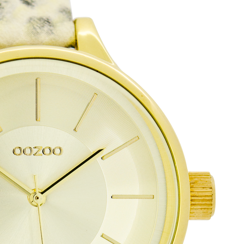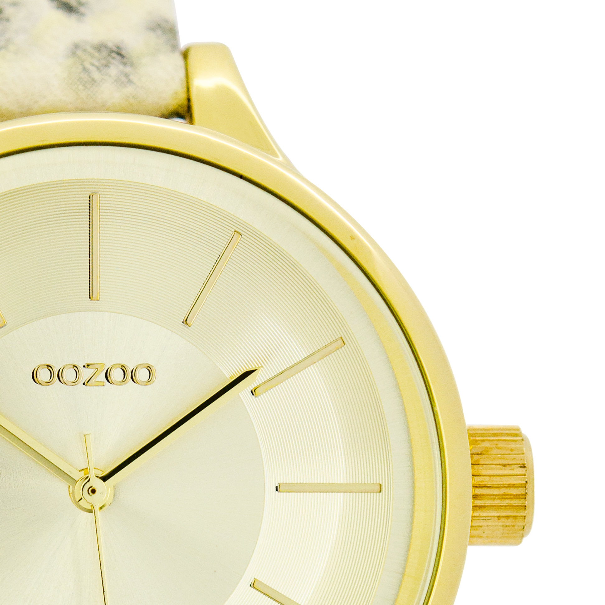 Gold coloured OOZOO watch with grey leather strap - C7545
