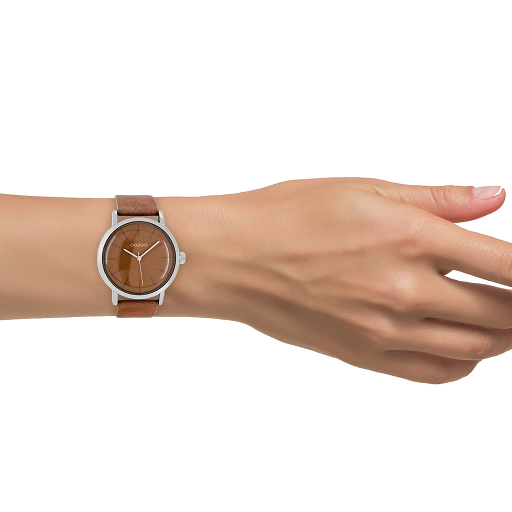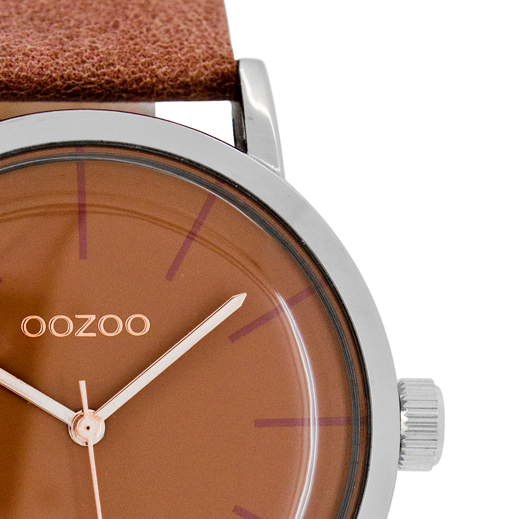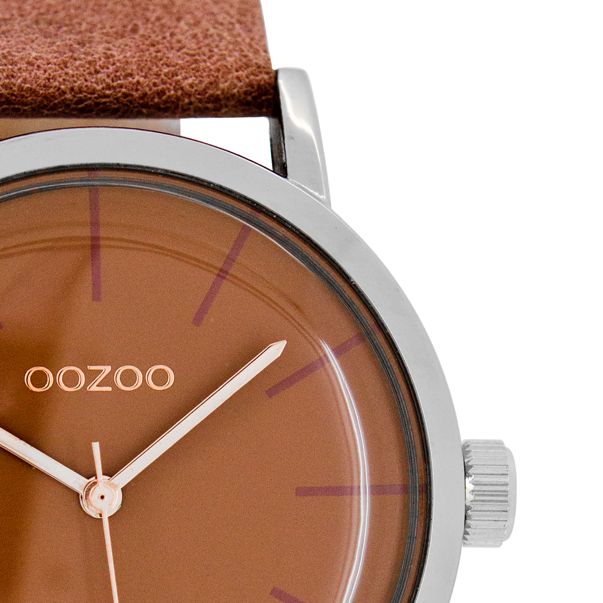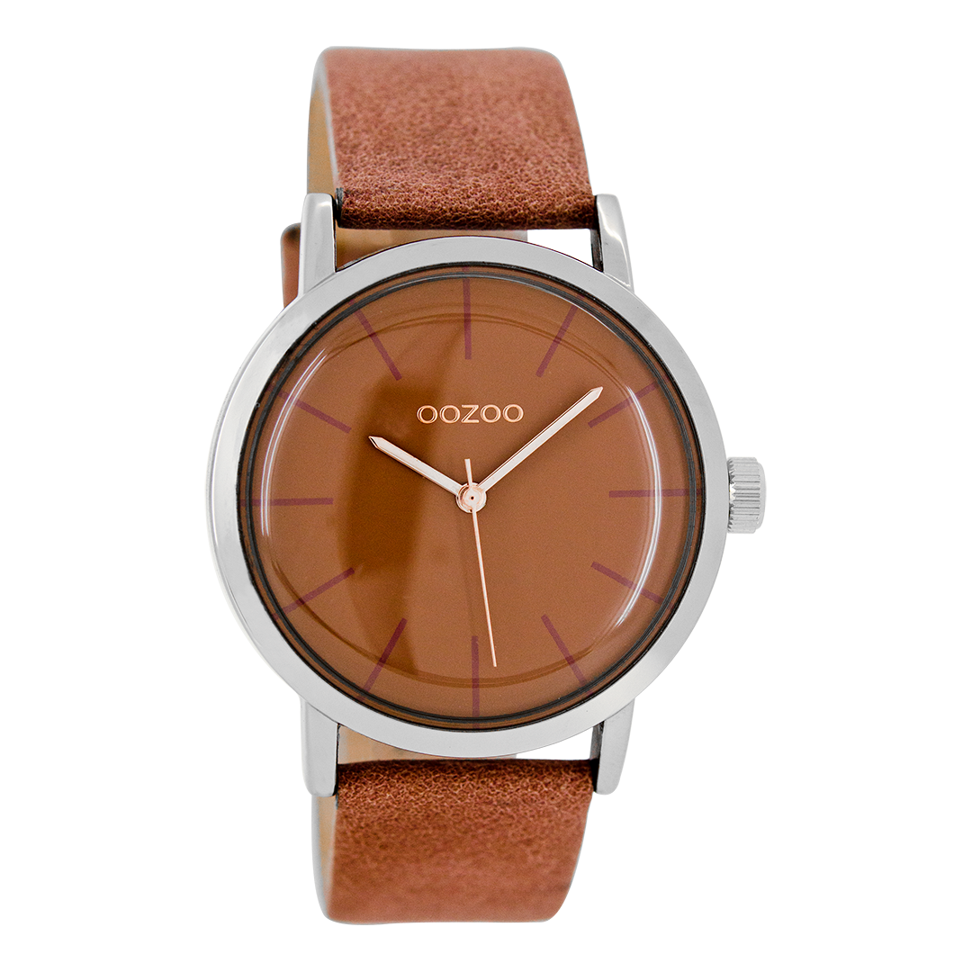 Silver coloured OOZOO watch with dusty orange leather strap - C7563