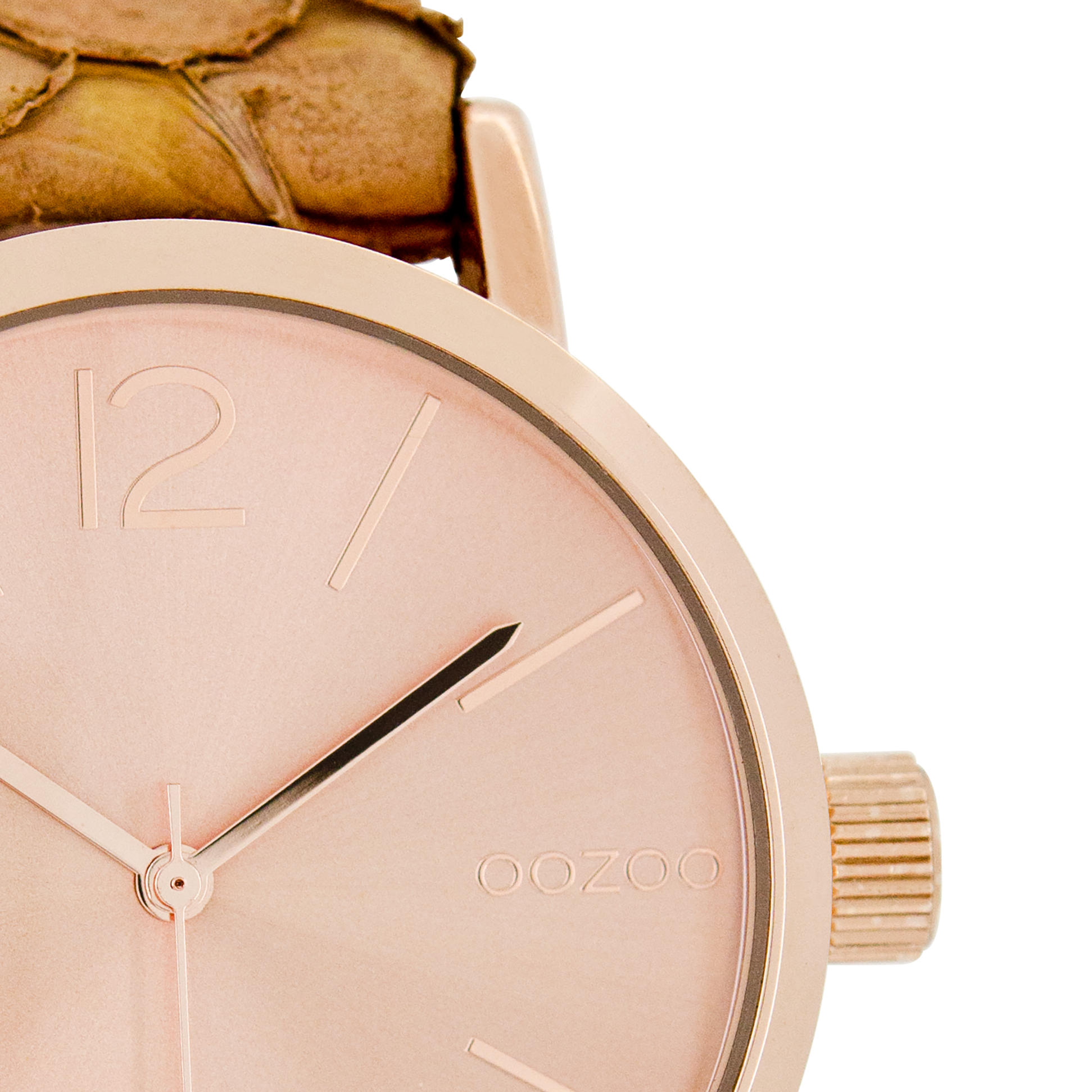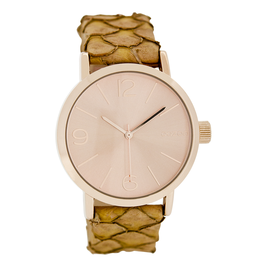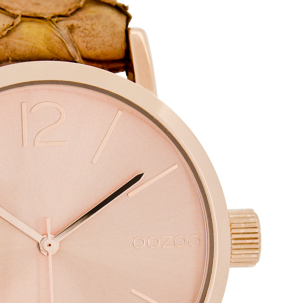 Rose gold coloured OOZOO watch with brown leather strap - C7575