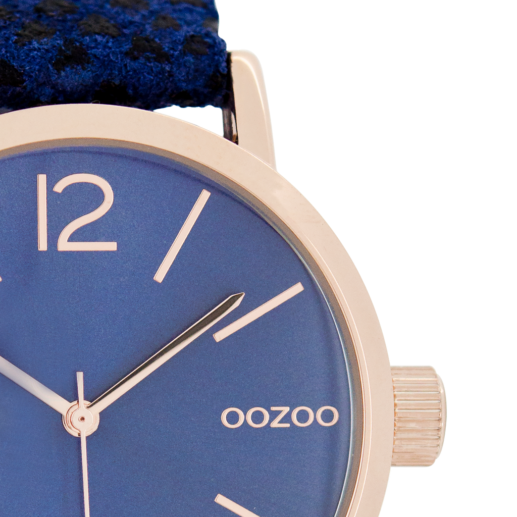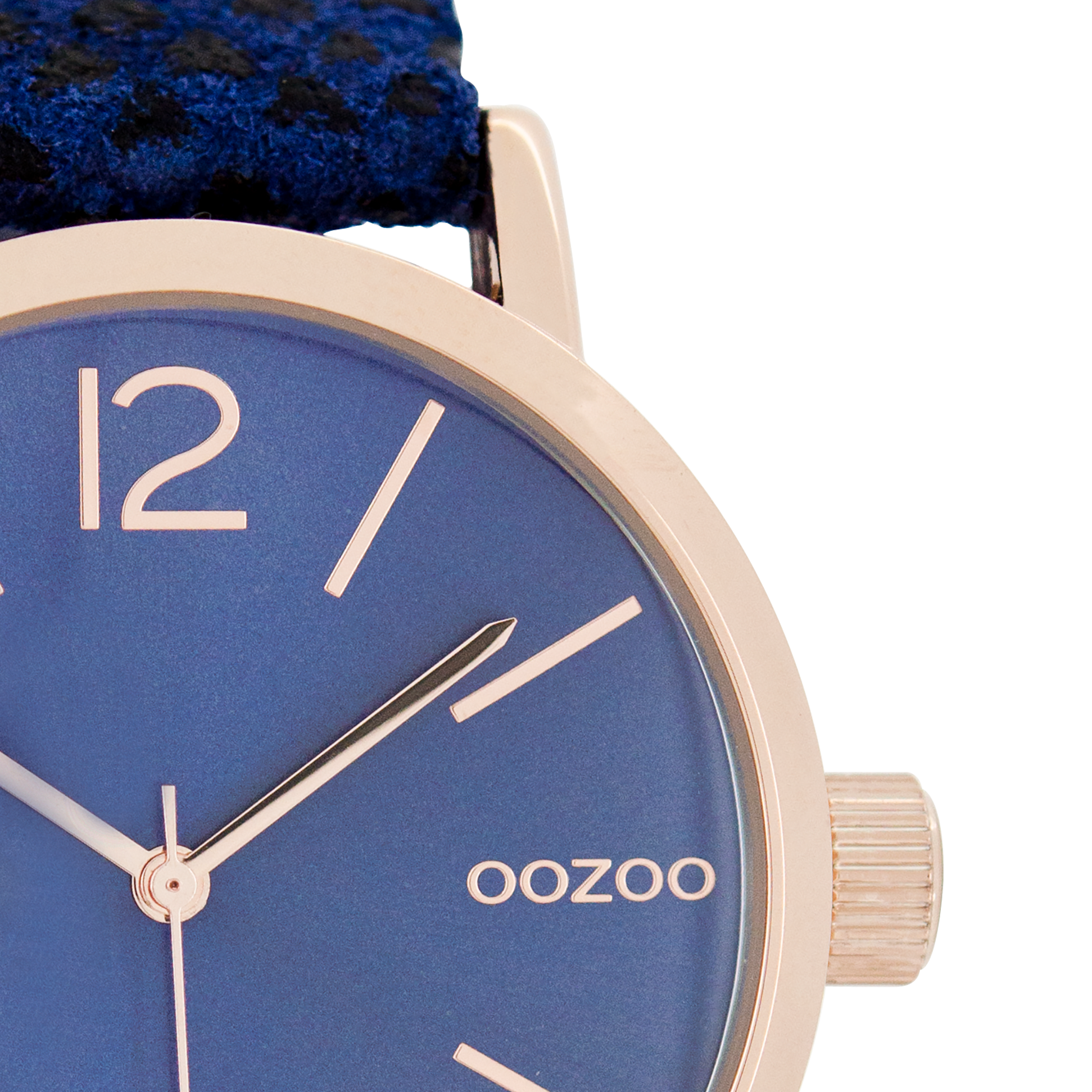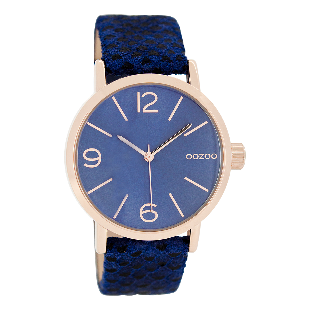 Rose gold coloured OOZOO watch with dark blue leather strap - C7577