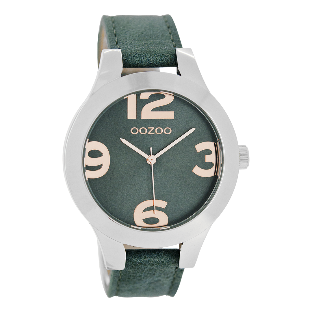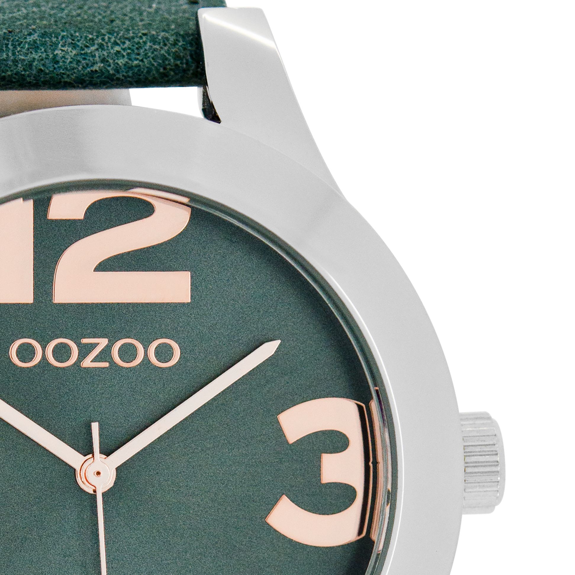 Silver coloured OOZOO watch with aqua green leather strap - C7593