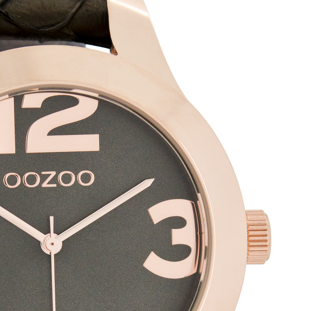 Rose gold coloured OOZOO watch with black leather strap - C7599