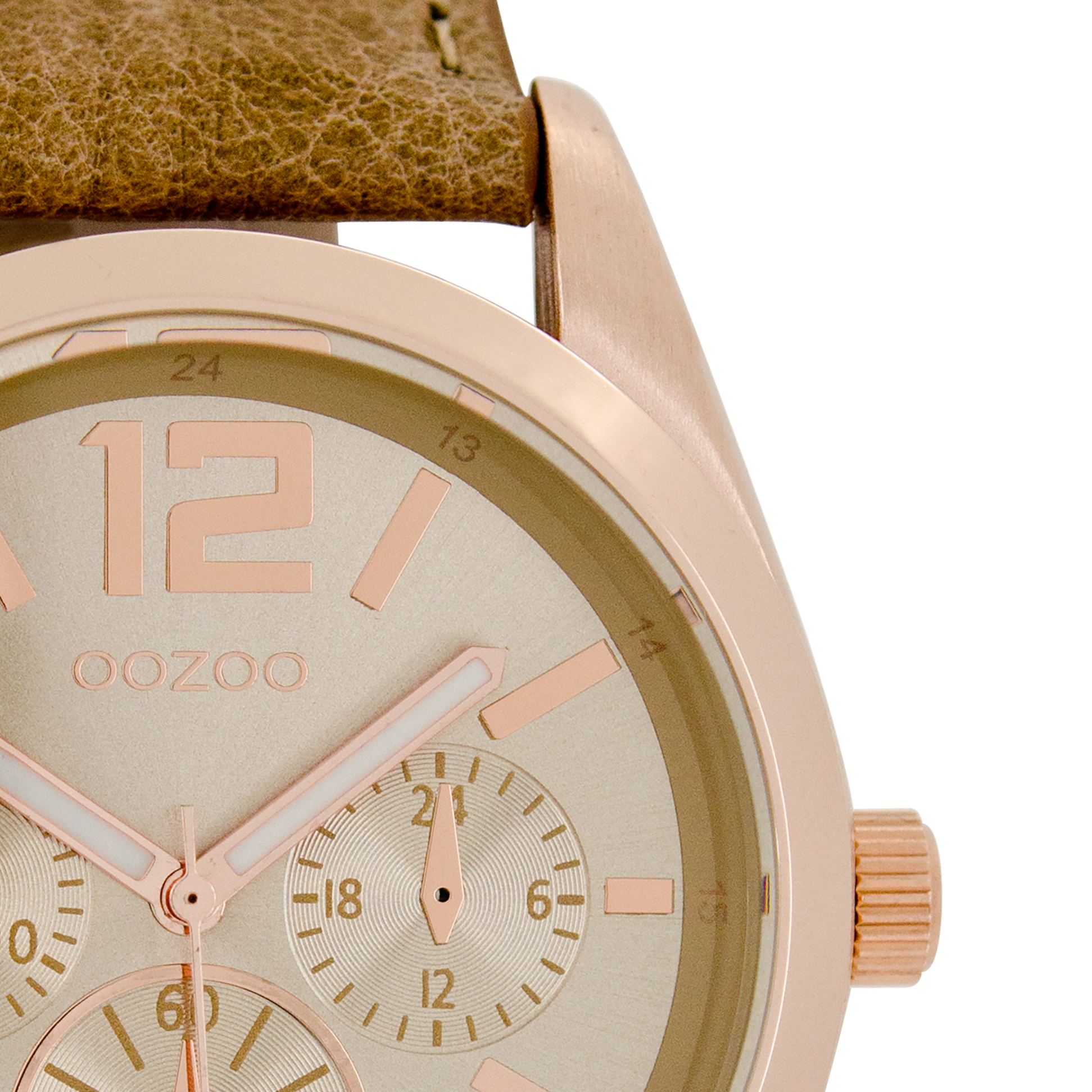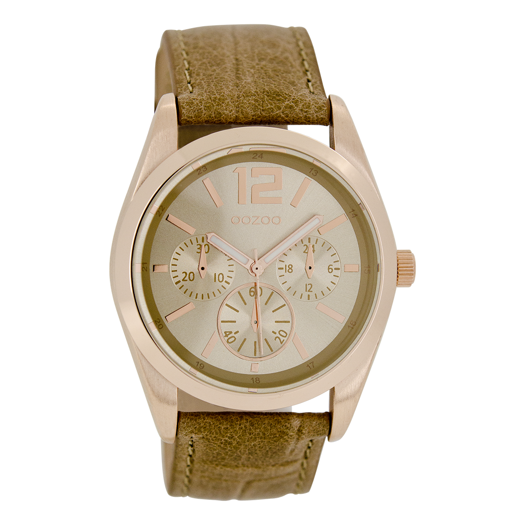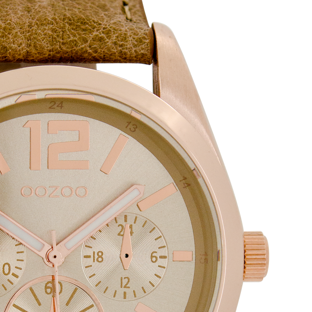 Rose gold coloured OOZOO watch with camel leather strap - C7622