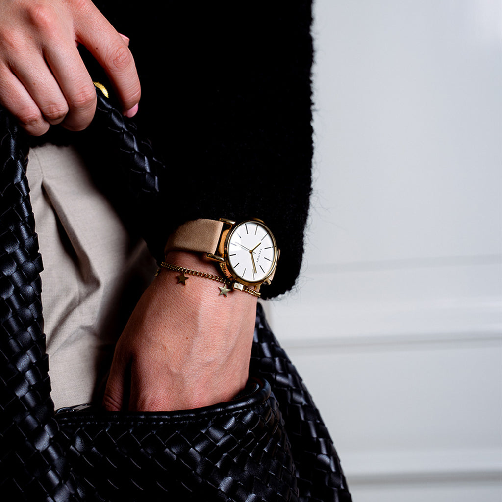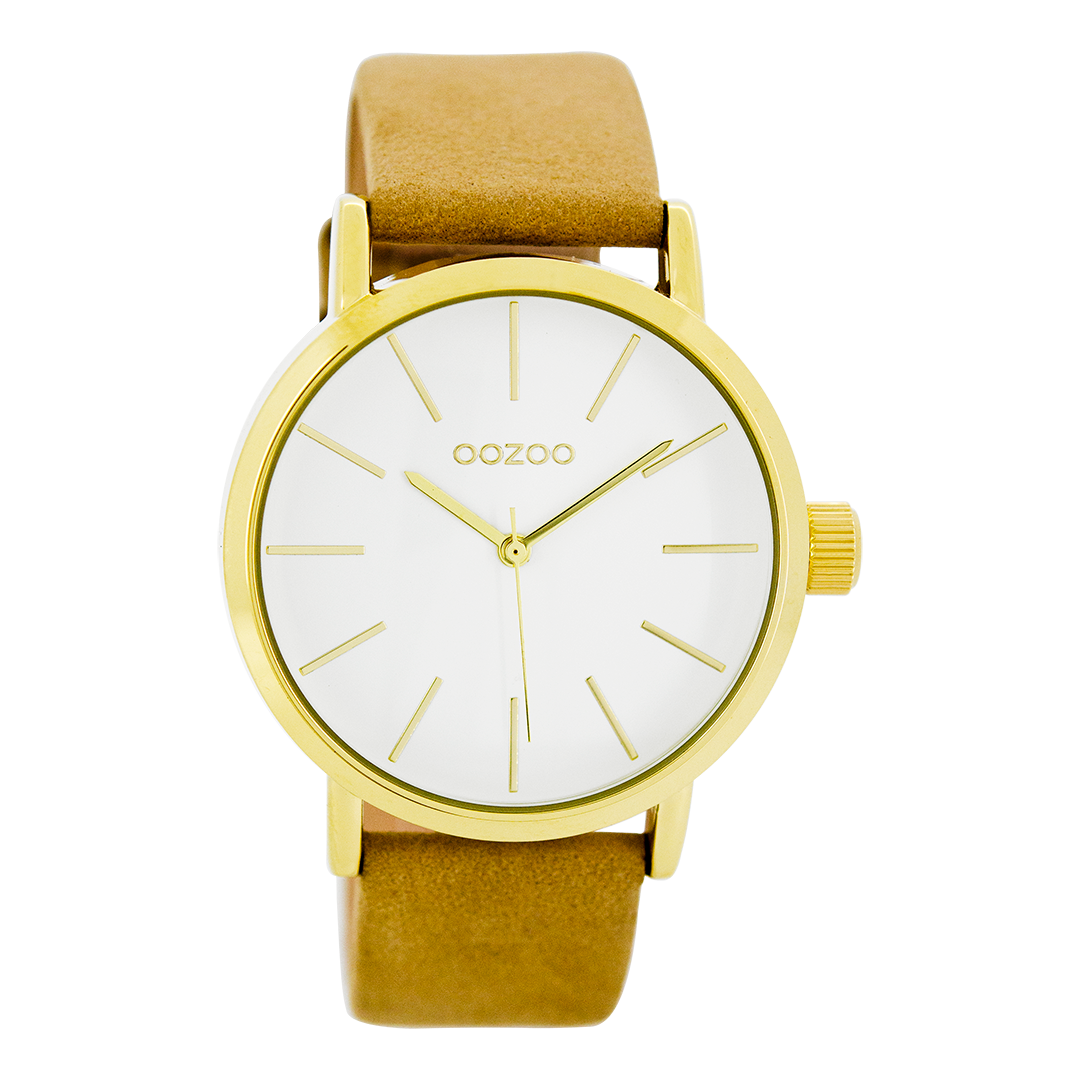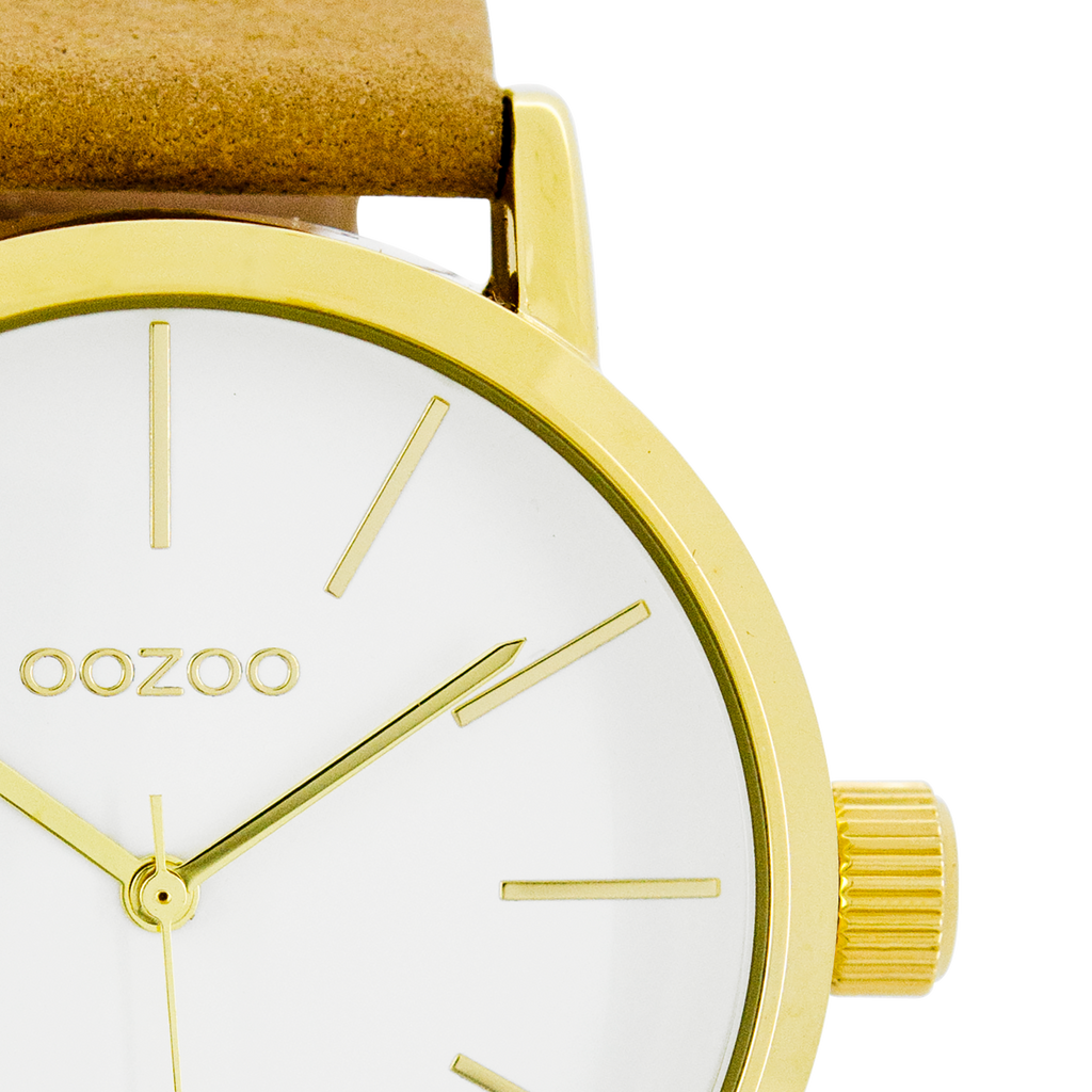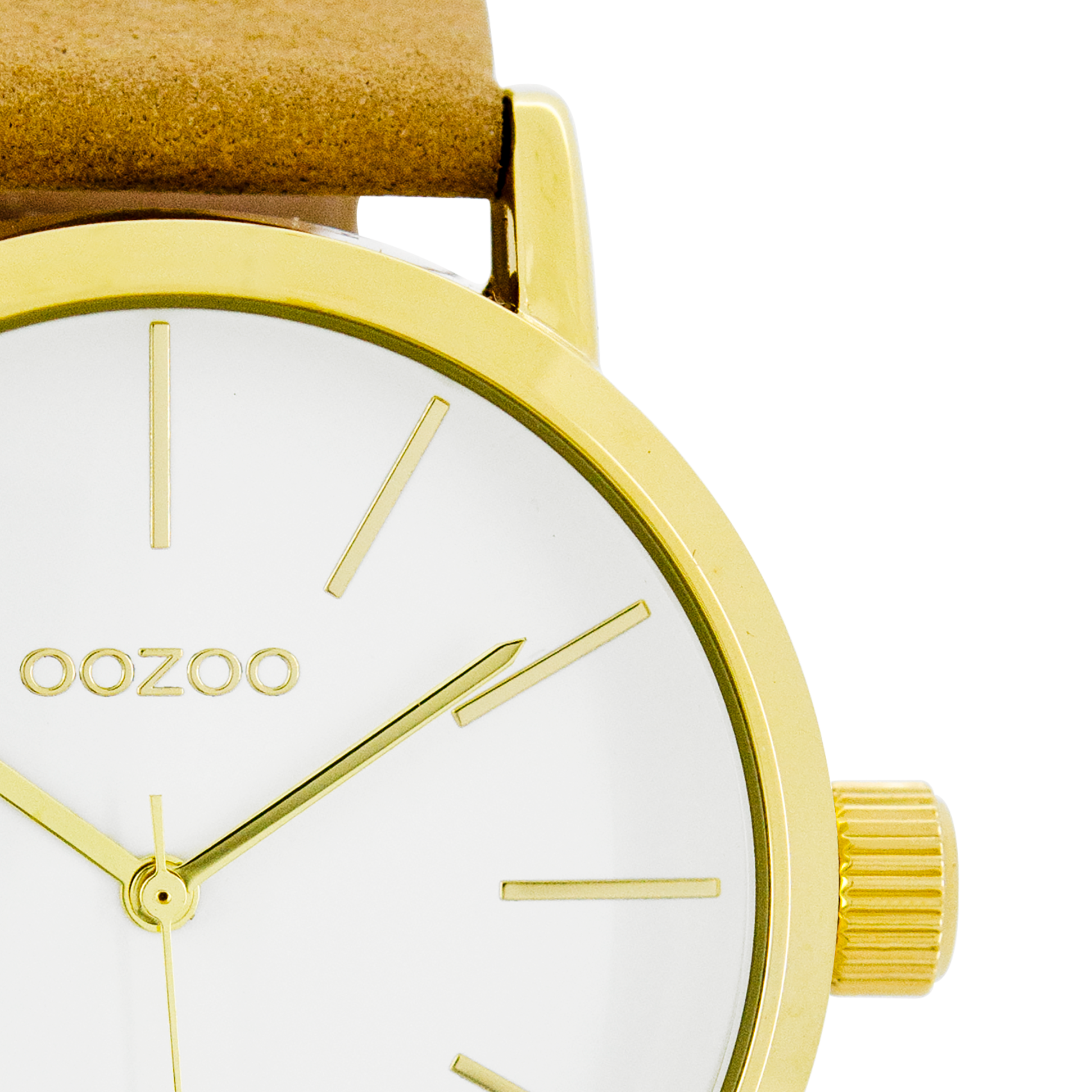 Gold coloured OOZOO watch with camel leather strap - C7679