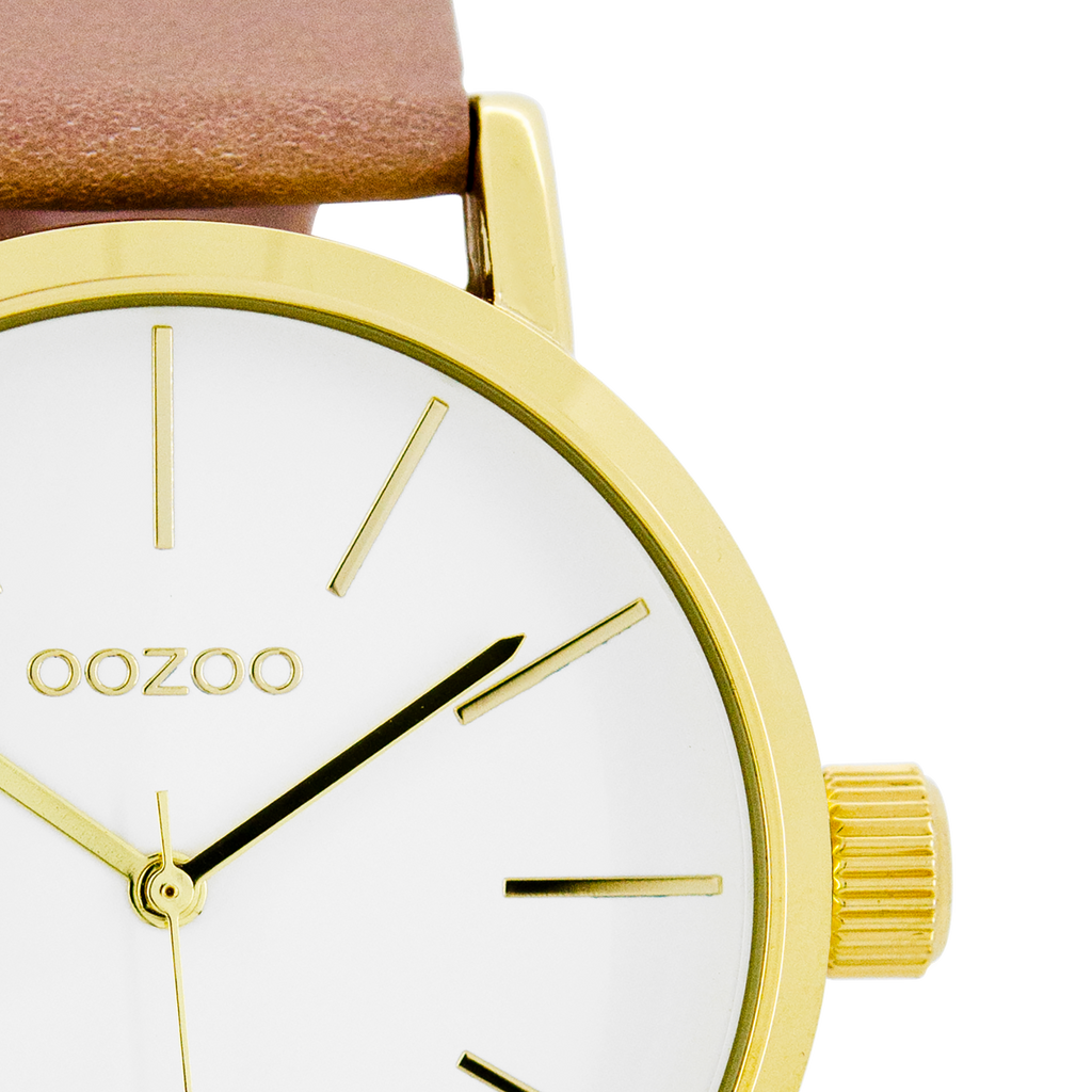Gold coloured OOZOO watch with pink grey leather strap - C7680