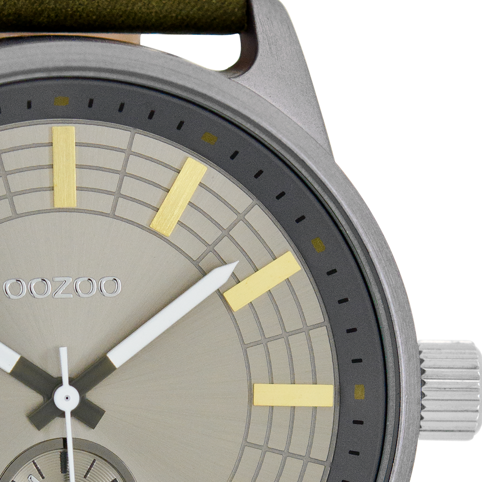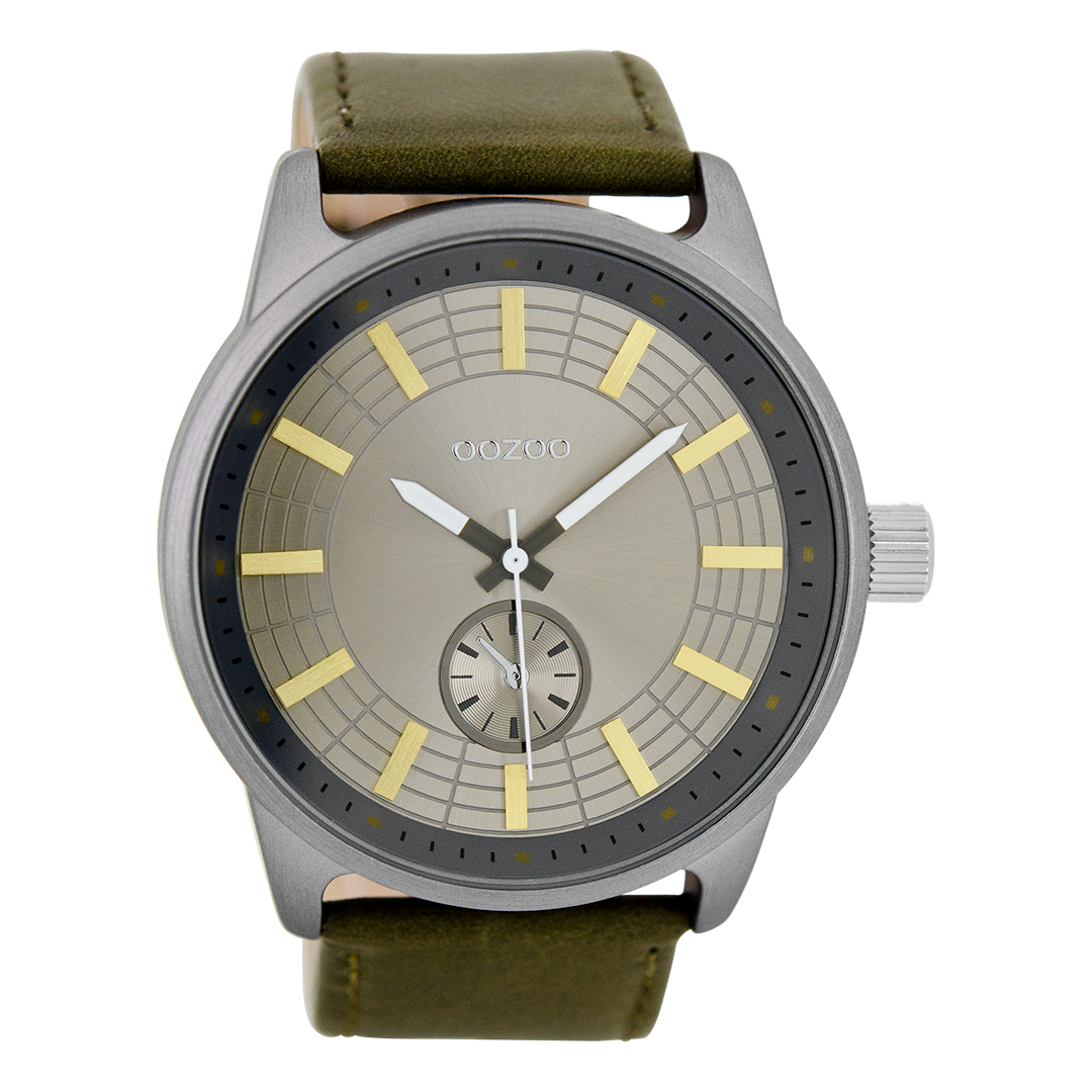 Stand out with this beautiful round gents design from the trendy OOZOO Timepieces collection. The C7821 has a stitched dark green leather strap and 48 mm titanium matte watch case. You are making quite the fashion statement with this grey sunray dial, gold coloured stripes digits and grey/white hands. This essential watch for your wardrobe has a mineral glass, stainless steel backplate and is nickel safe. This watch has a 2 Japanese movement and is covered by a 2 year warranty (see section 3 of our Refund, shipping & warranty policy).