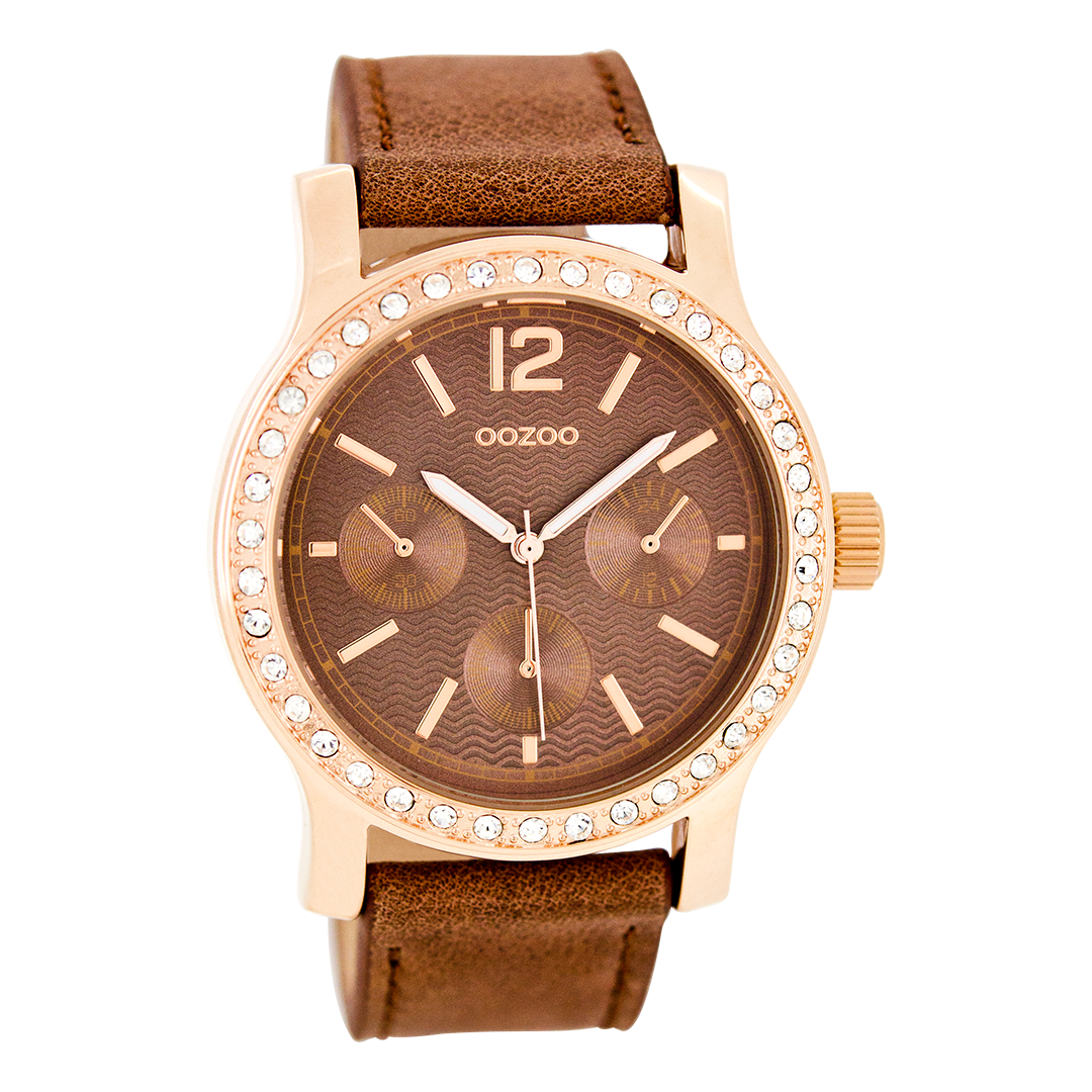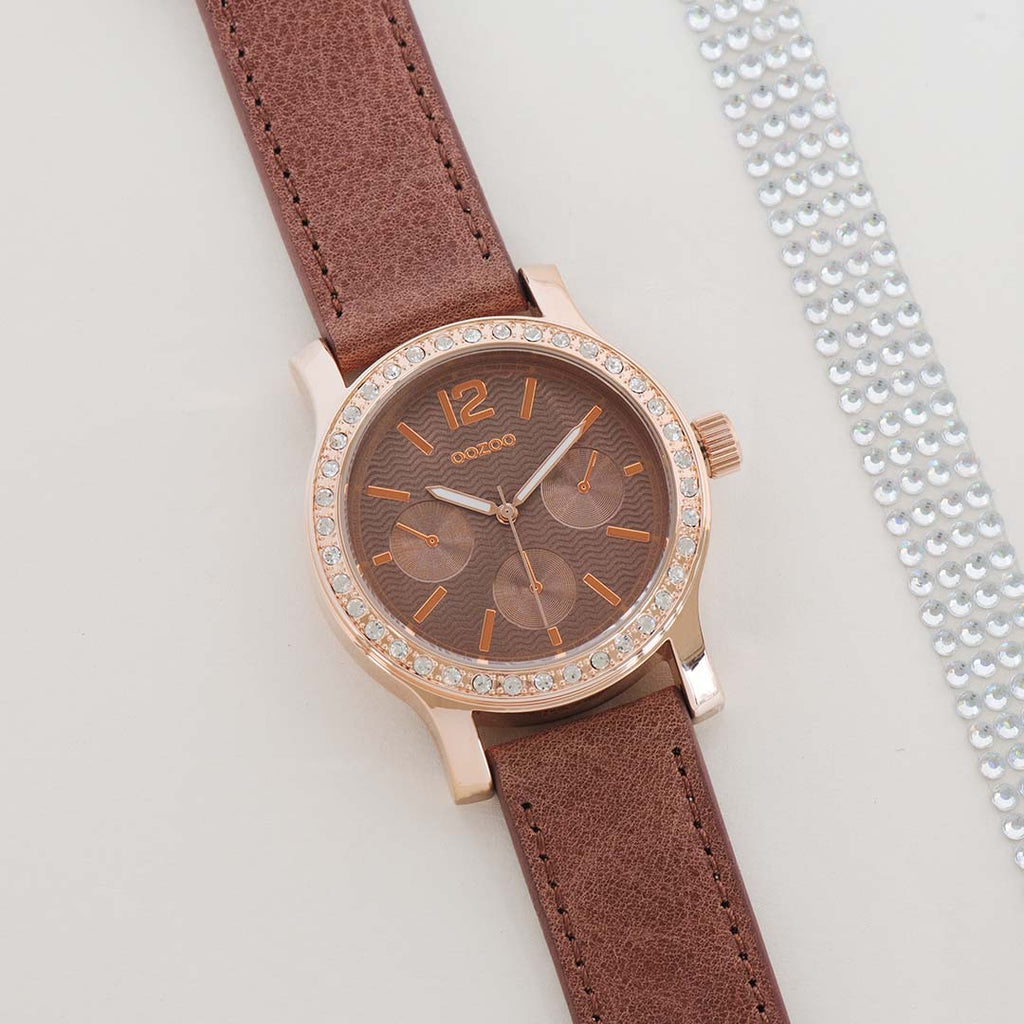 Rose gold coloured OOZOO watch with pink leather strap - C7933