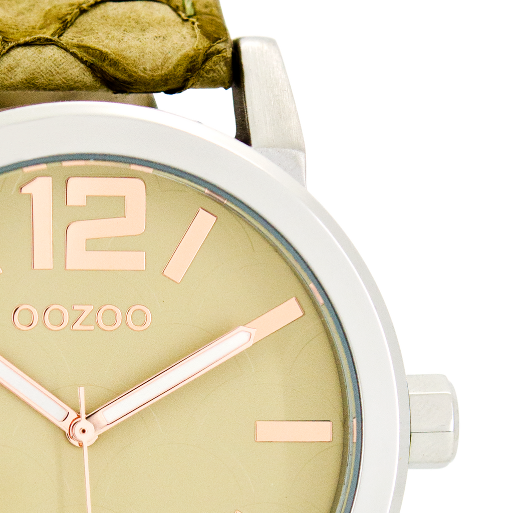 Silver coloured OOZOO watch with sand/light green leather strap - C7995