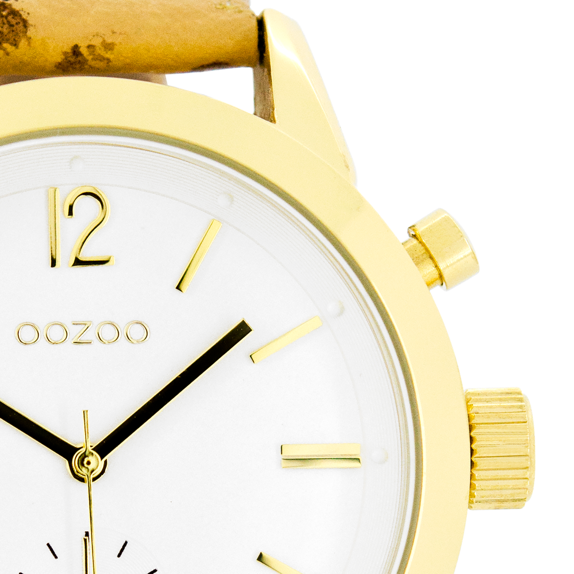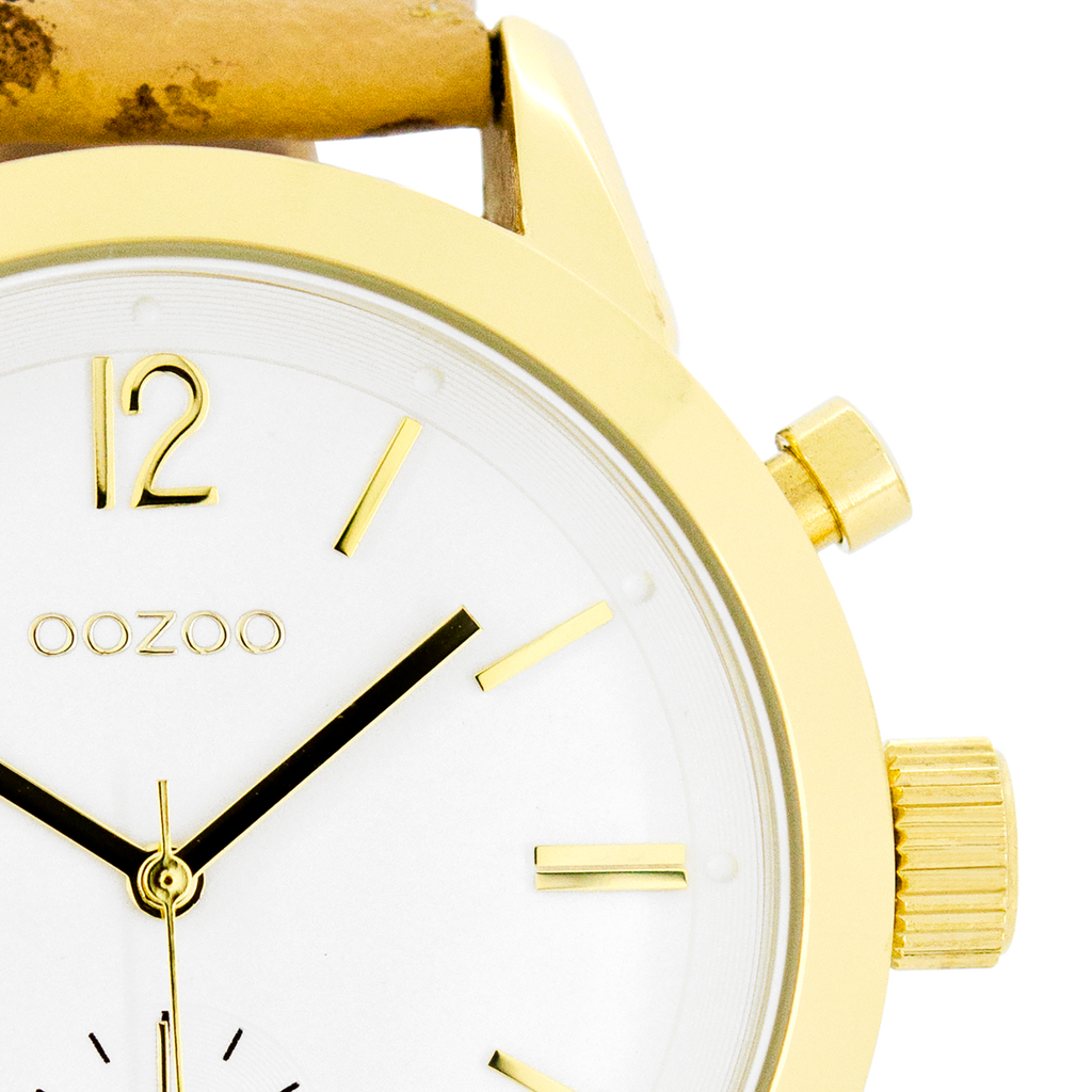Gold coloured OOZOO watch with camel leather strap - C8011