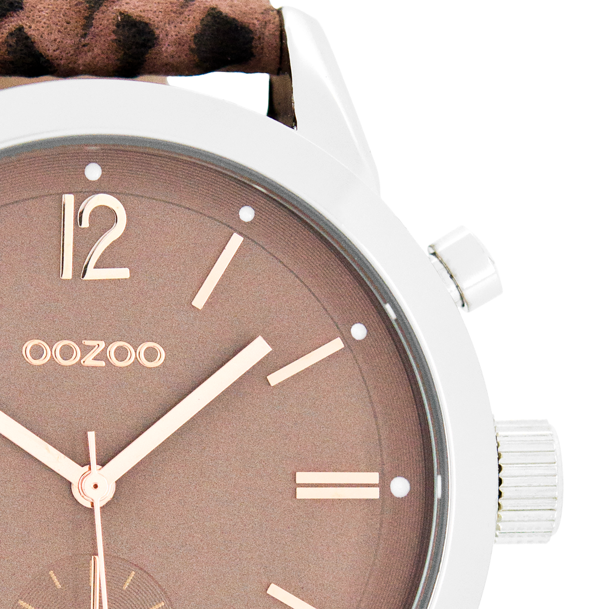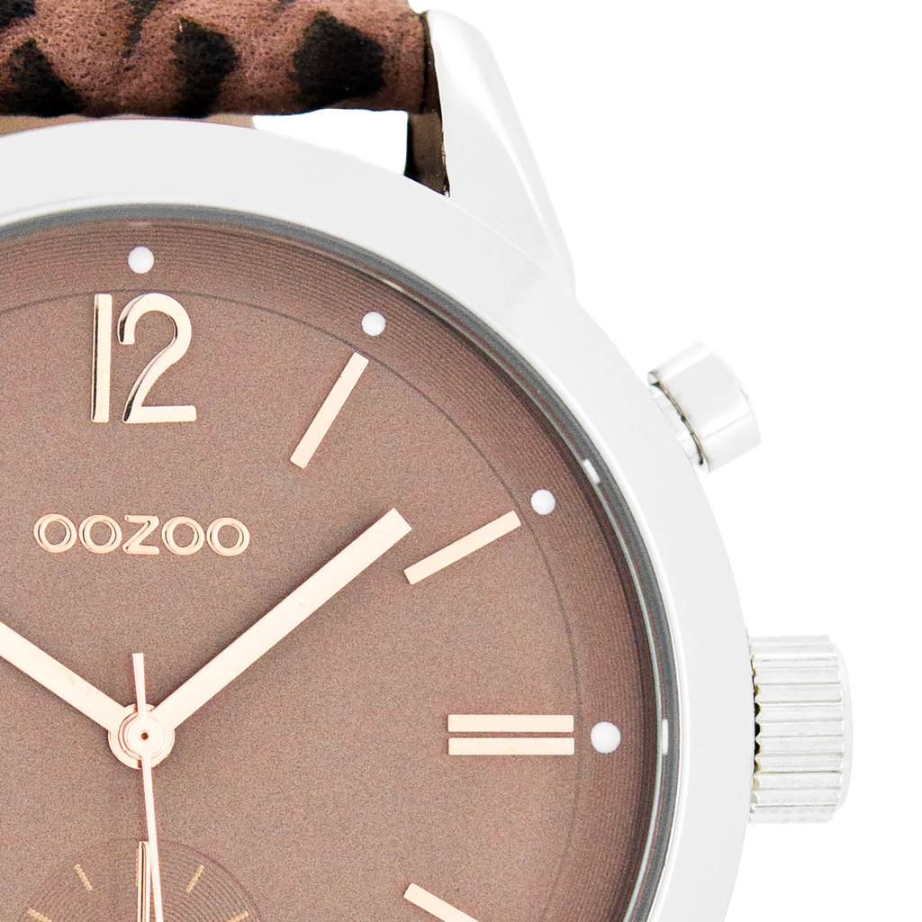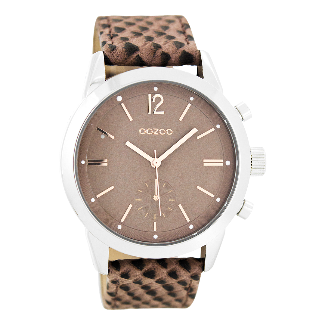 Stand out with this beautiful round ladies design from the trendy OOZOO Timepieces collection. The C8013 has a croco pink grey leather strap and 43 mm silver coloured metal watch case. You are making quite the fashion statement with this pink grey chrono dial, rose gold coloured stripes and numbers digits and matching hands. This essential watch for your wardrobe has a mineral glass, stainless steel backplate and is nickel safe. This watch has a 2 Japanese movement and is covered by a 2 year warranty (see section 3 of our Refund, shipping & warranty policy).