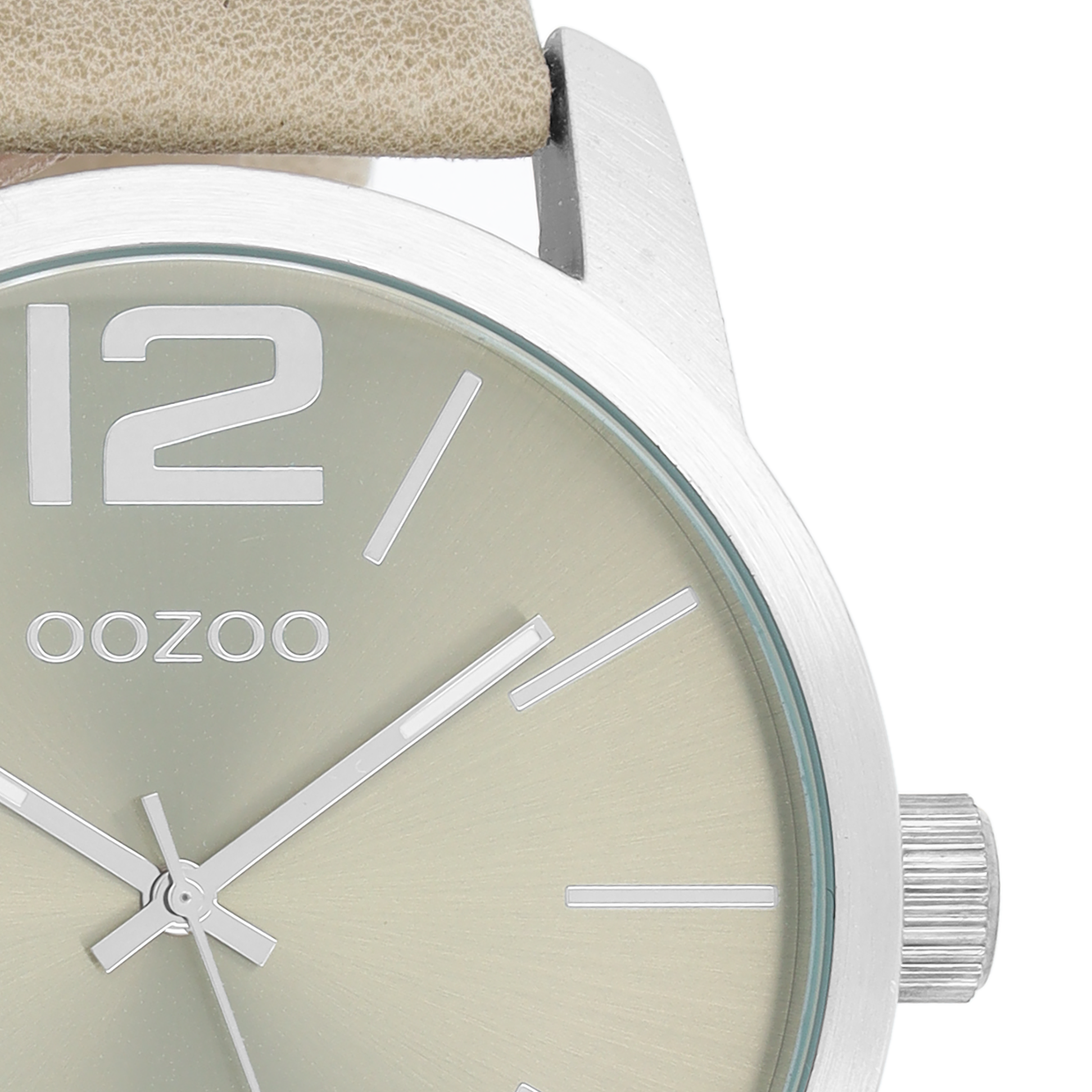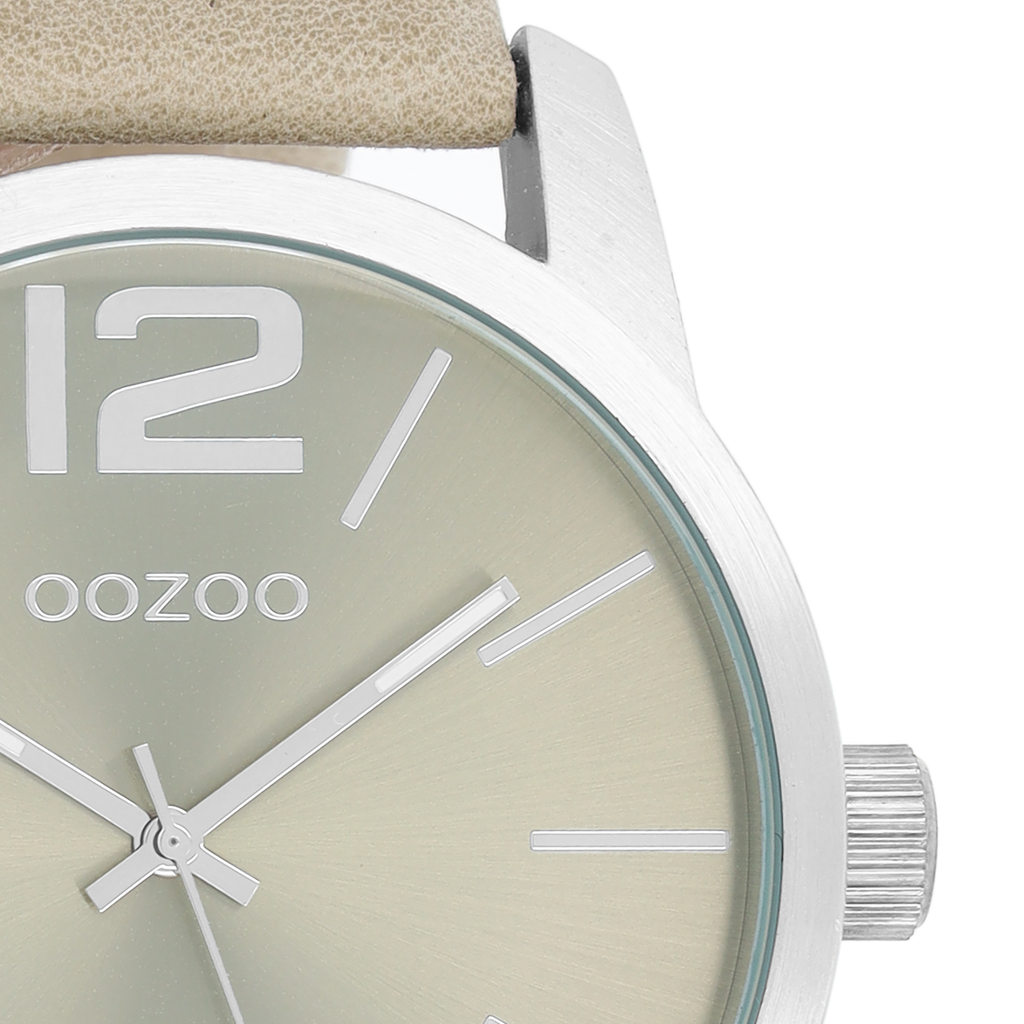 Silver coloured OOZOO watch with sand/light green leather strap - C8031