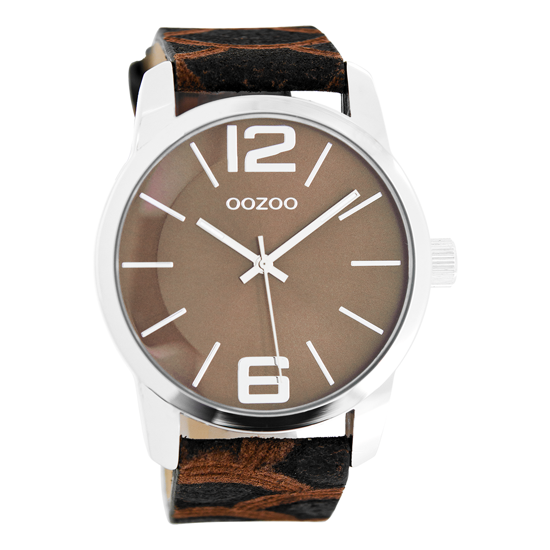 Stand out with this beautiful round ladies design from the trendy OOZOO Timepieces collection. The C8042 has a turtle print brown leather strap and 49 mm silver coloured metal watch case. You are making quite the fashion statement with this brown sunray dial, silver coloured stripes and numbers digits and silver coloured/white hands. This essential watch for your wardrobe has a mineral glass, stainless steel backplate and is nickel safe. This watch has a 2 Japanese movement and is covered by a 2 year warranty (see section 3 of our Refund, shipping & warranty policy).