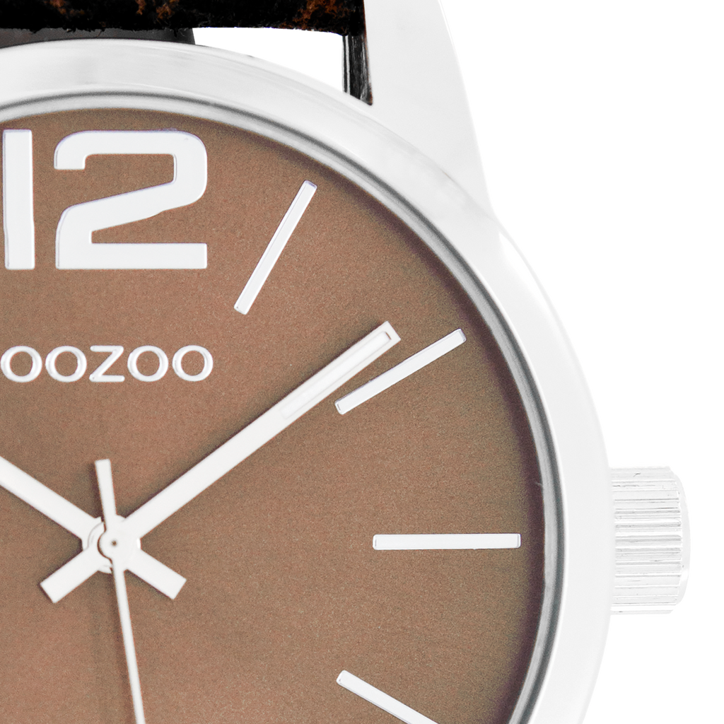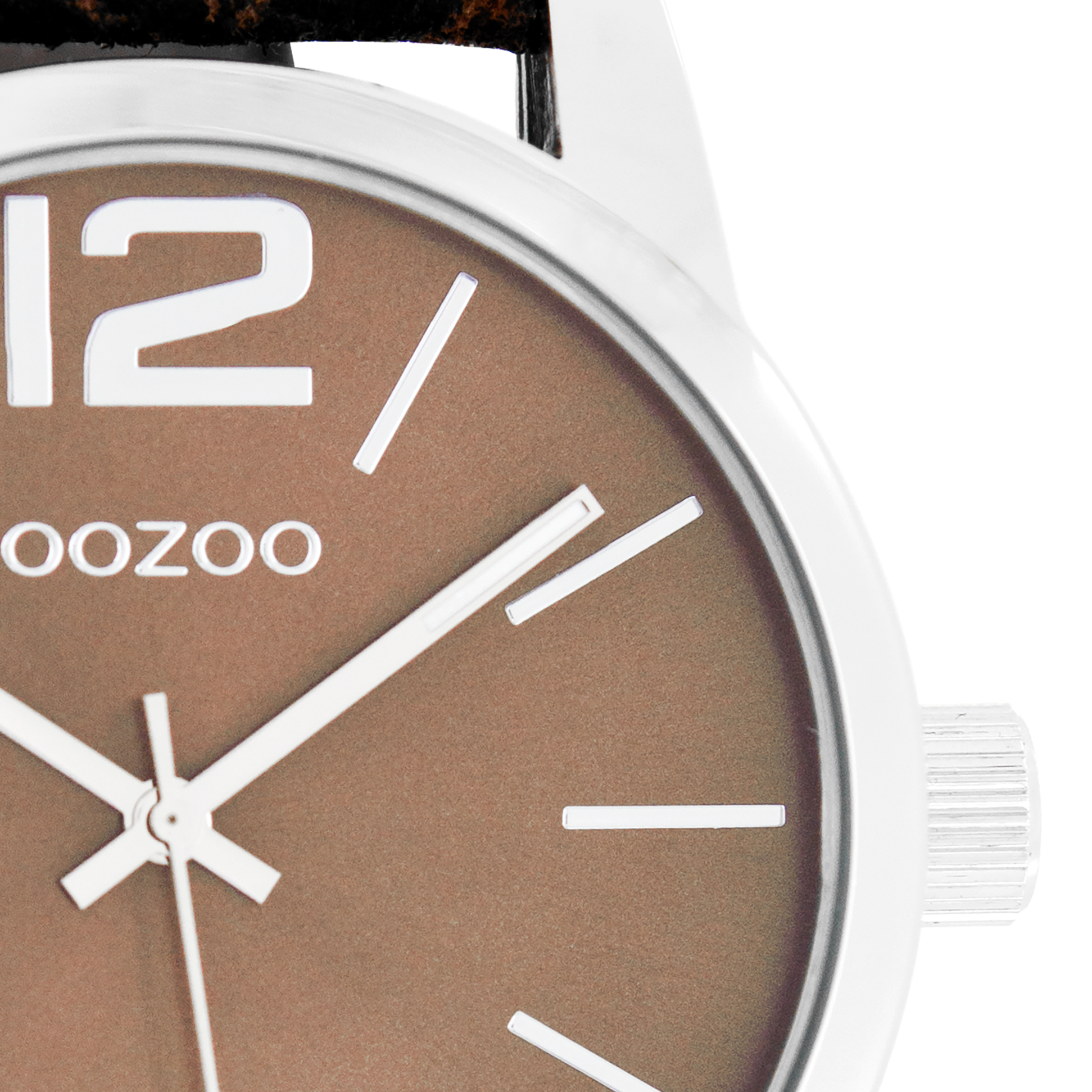 Silver coloured OOZOO watch with brown leather strap - C8042
