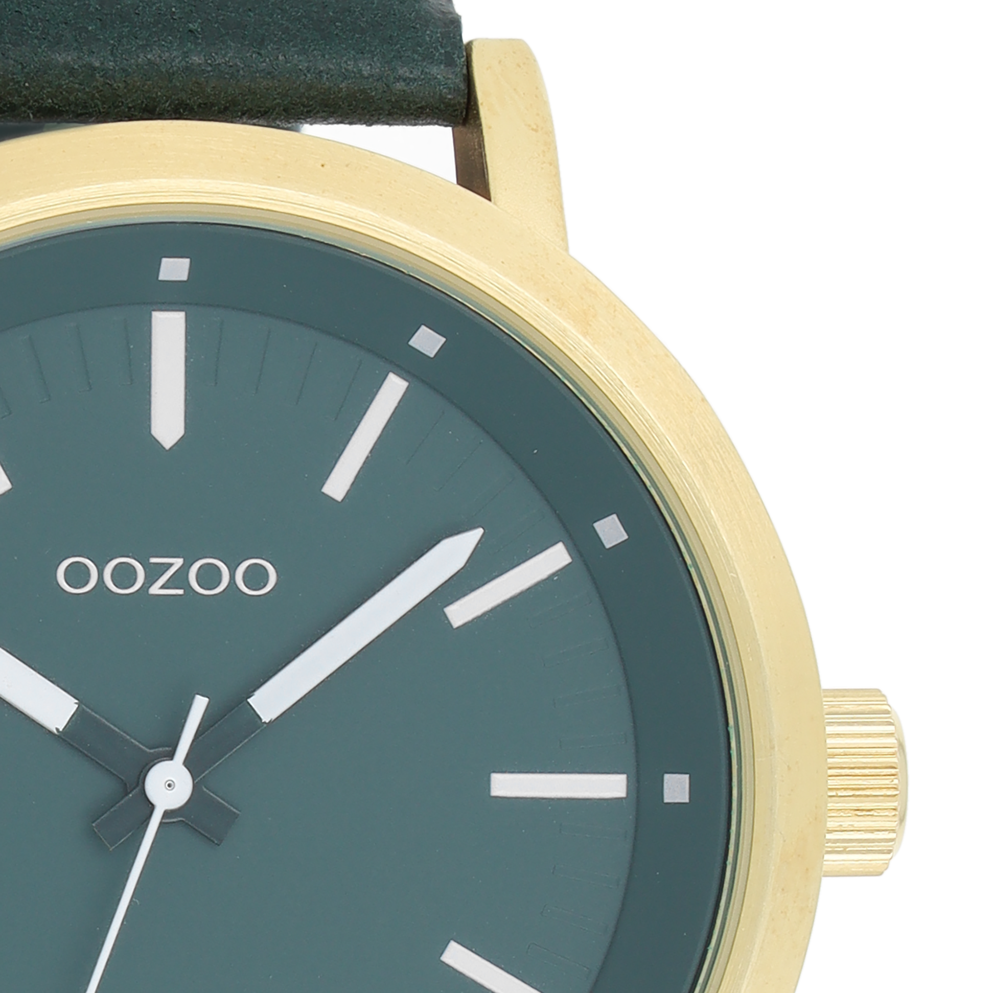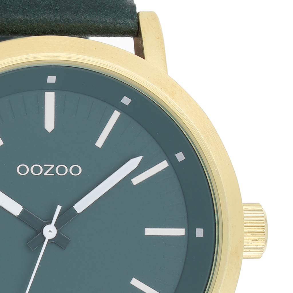Gold coloured OOZOO watch with dark green leather strap - C8252