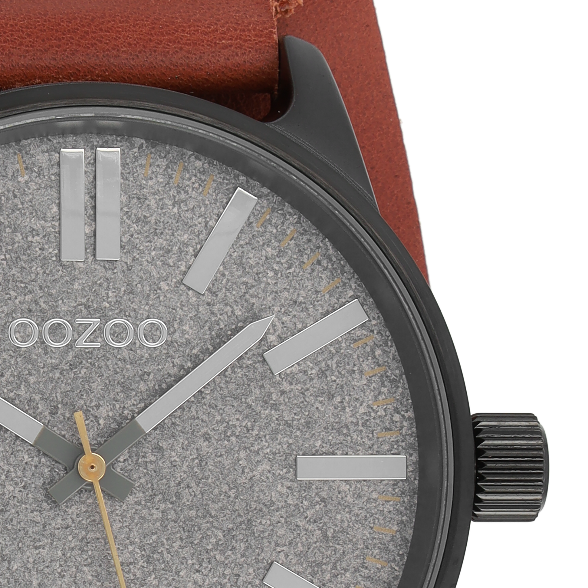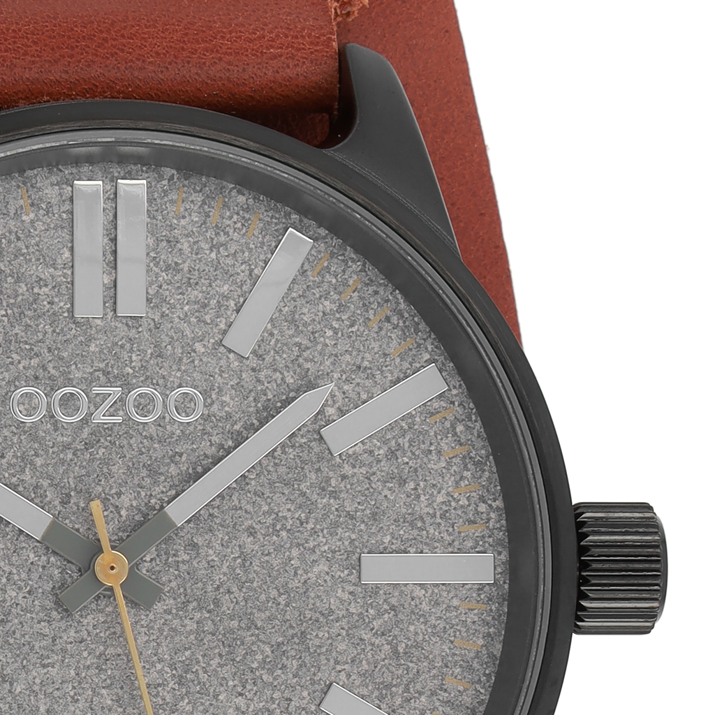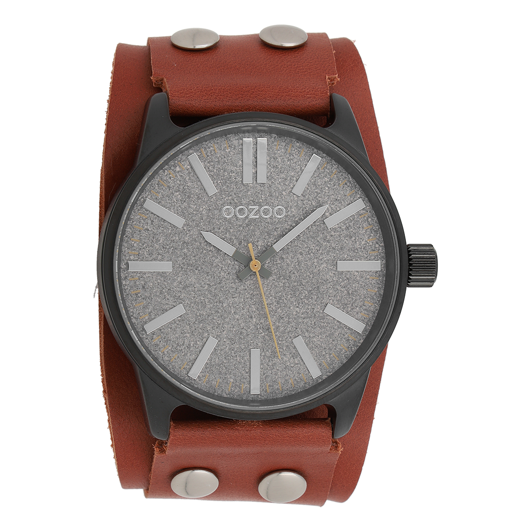 Stand out with this beautiful round gents design from the trendy OOZOO Timepieces collection. The C8282 has a cognac leather strap and 48 mm black metal watch case. You are making quite the fashion statement with this grey scratched dial, silver coloured stripes digits and black hands. This essential watch for your wardrobe has a mineral glass, stainless steel backplate and is nickel safe. This watch has a 2 Japanese movement and is covered by a 2 year warranty (see section 3 of our Refund, shipping & warranty policy).