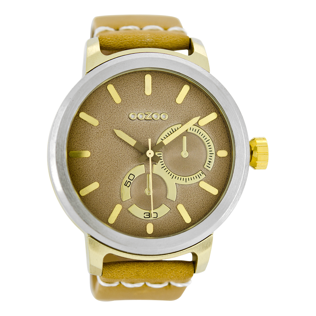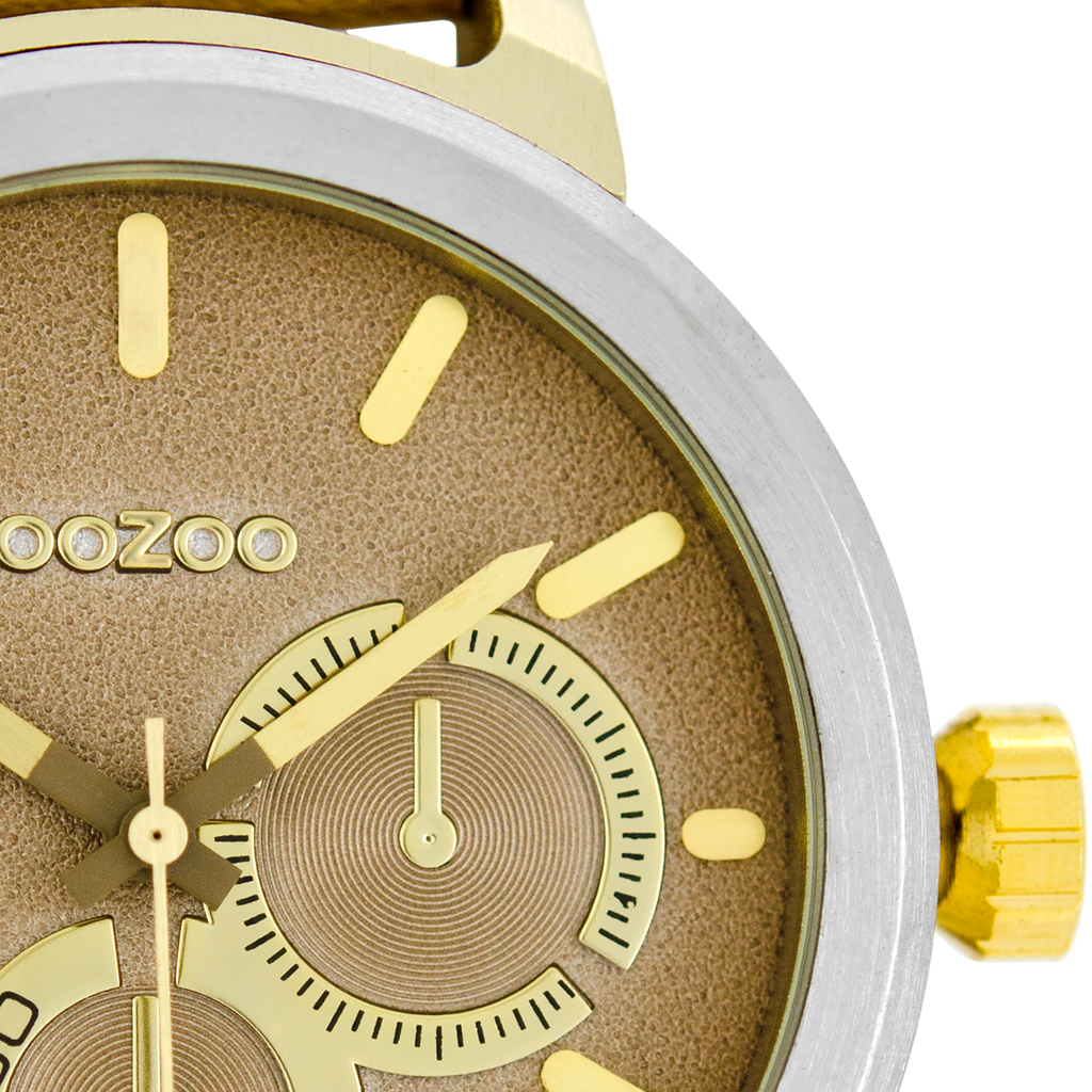 Silver coloured OOZOO watch with sand leather strap - C8293