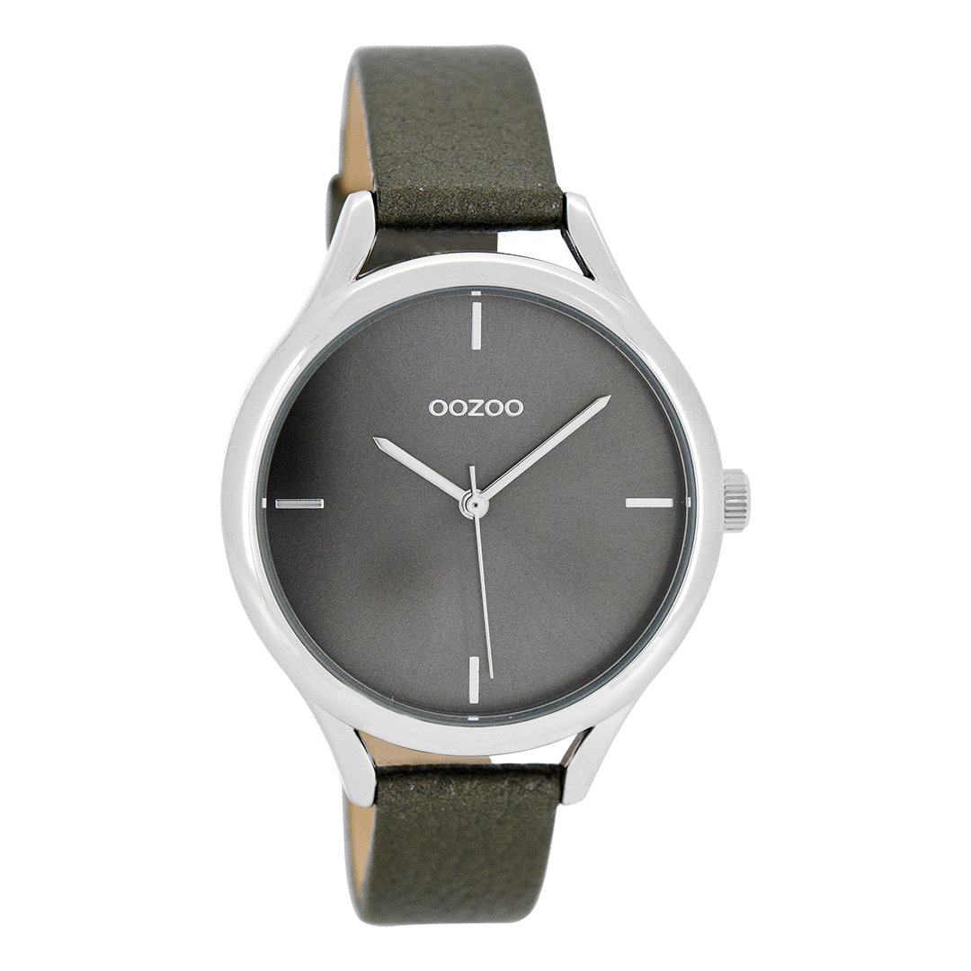 Silver coloured OOZOO watch with grey leather strap - C8348