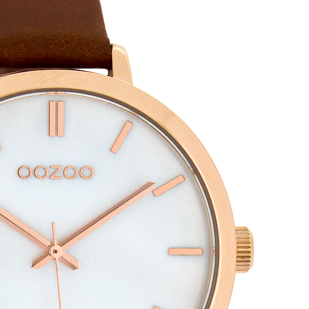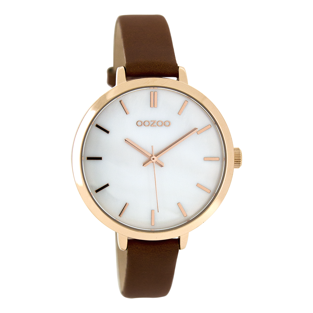 Rose gold coloured OOZOO watch with brown leather strap - C8358