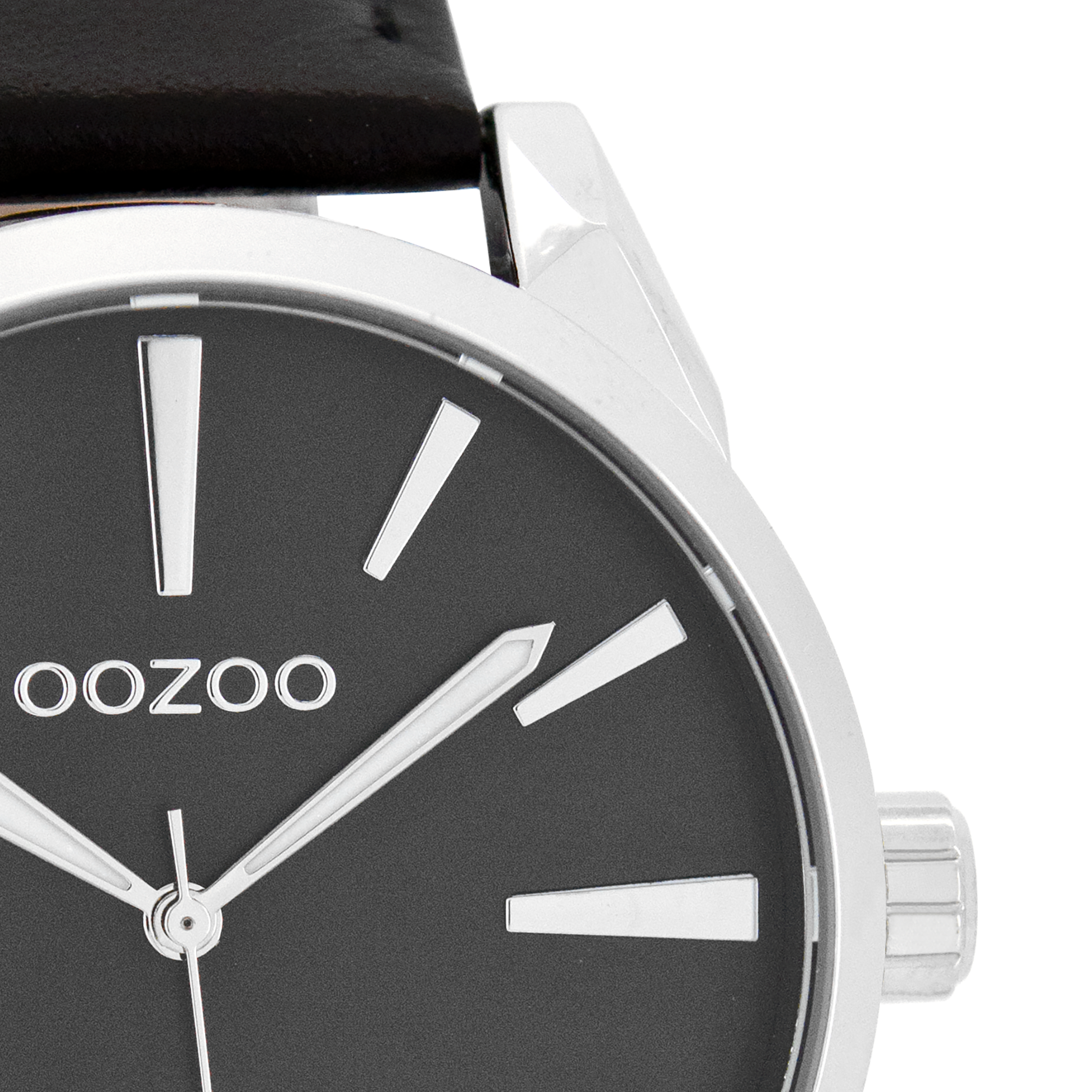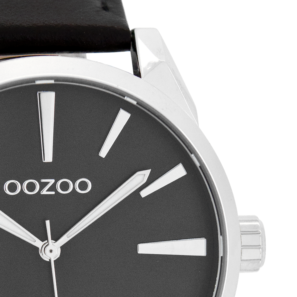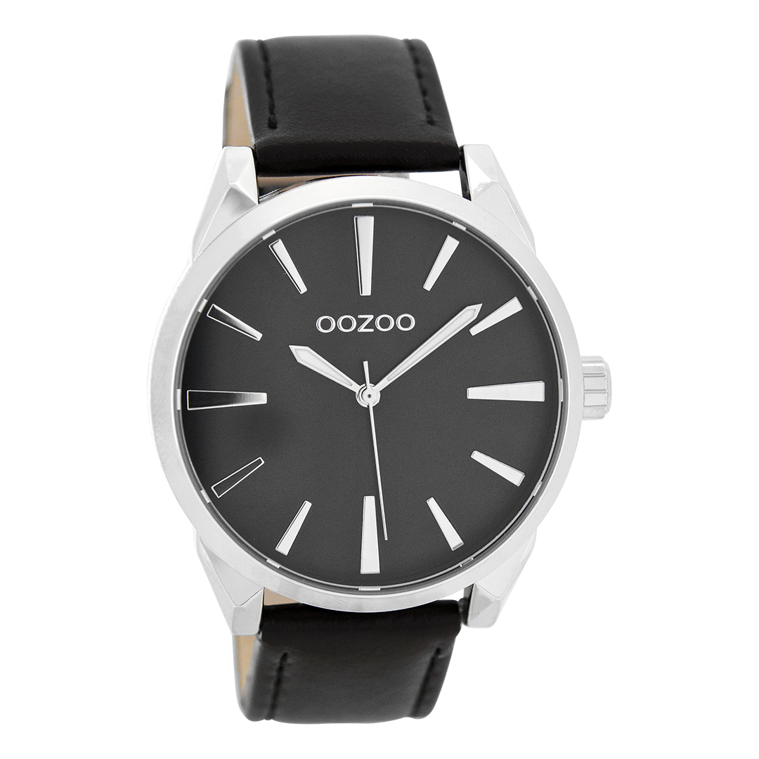 Silver coloured OOZOO watch with black leather strap - C8364